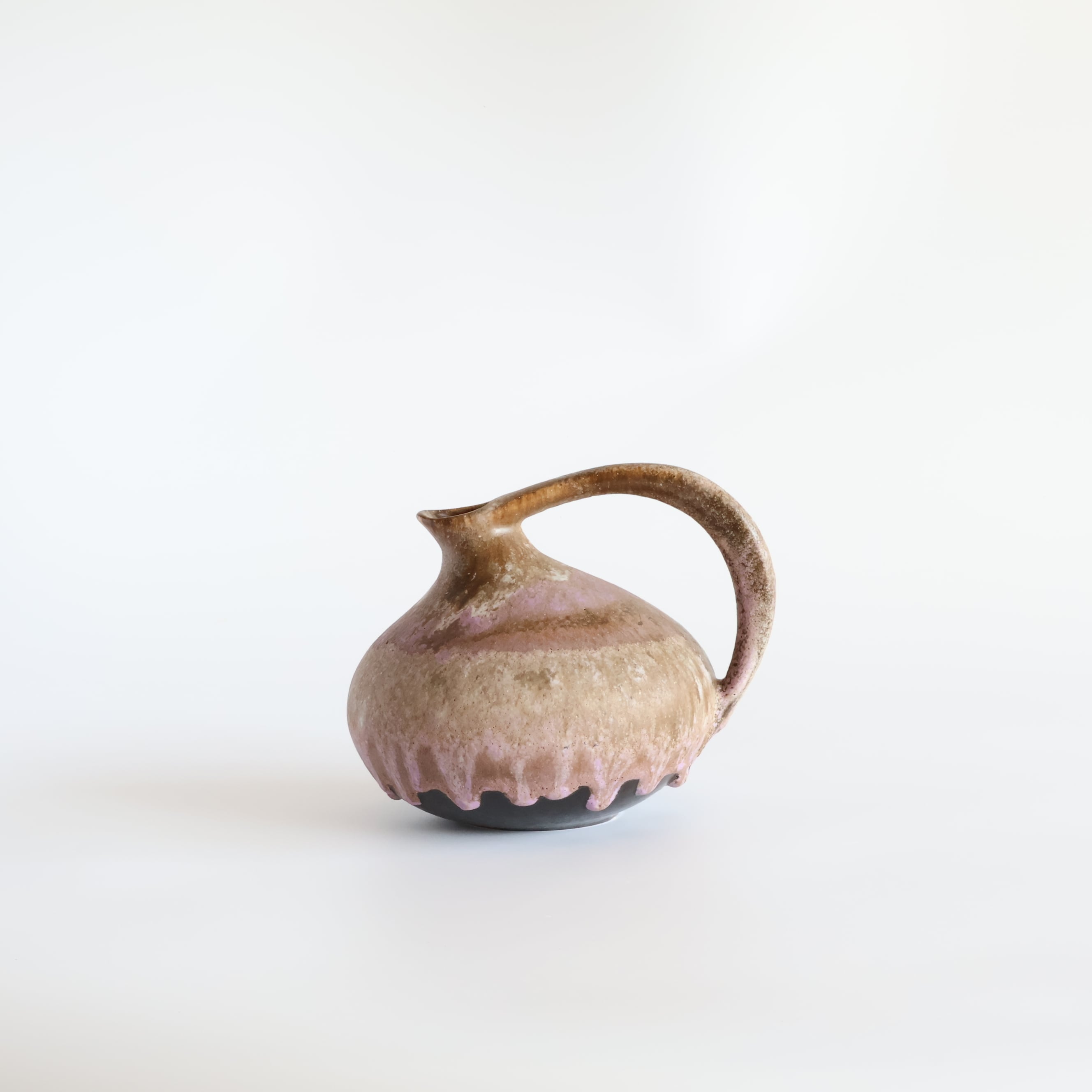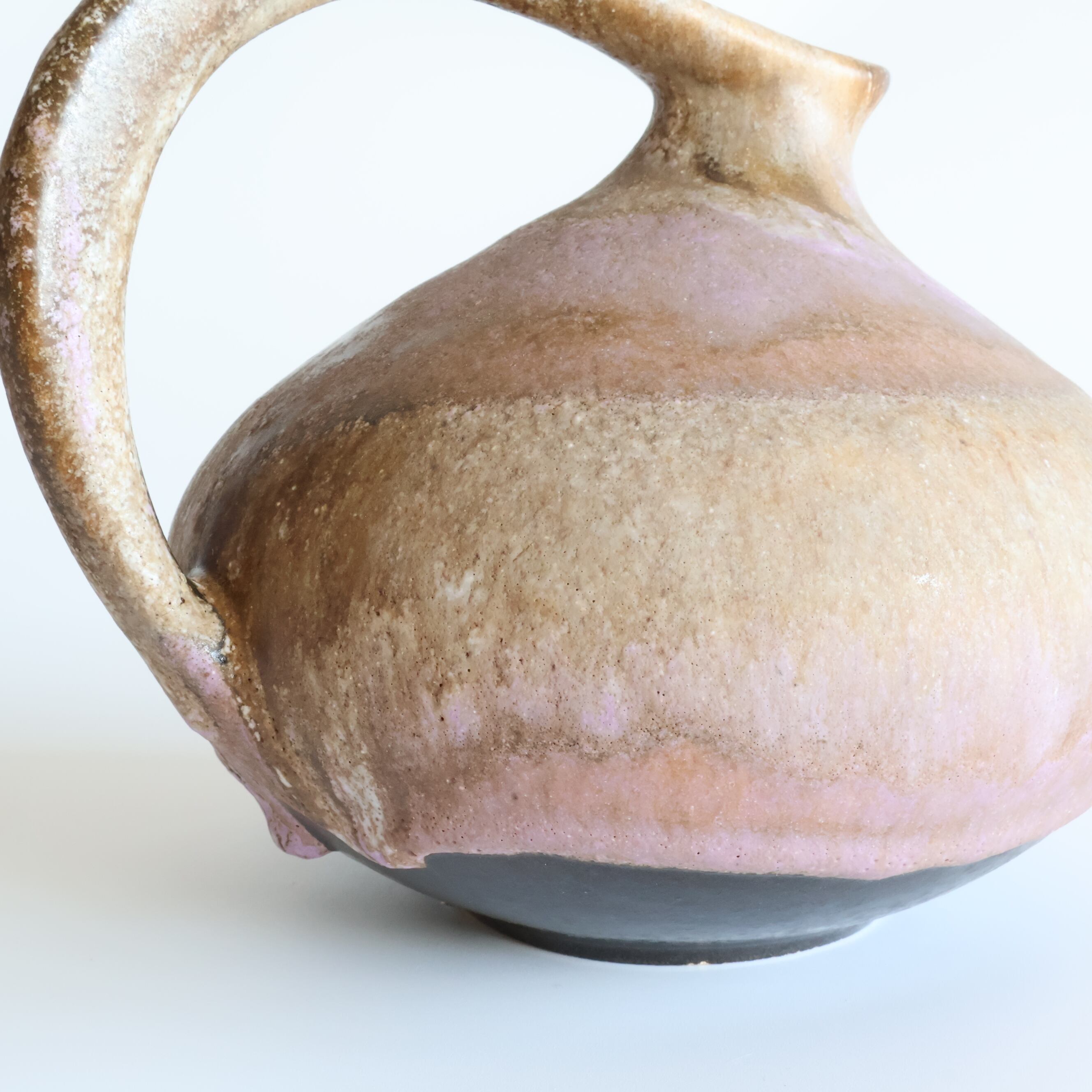 ピンクの流れ落ちる溶岩釉薬がとても美しい逸品です。