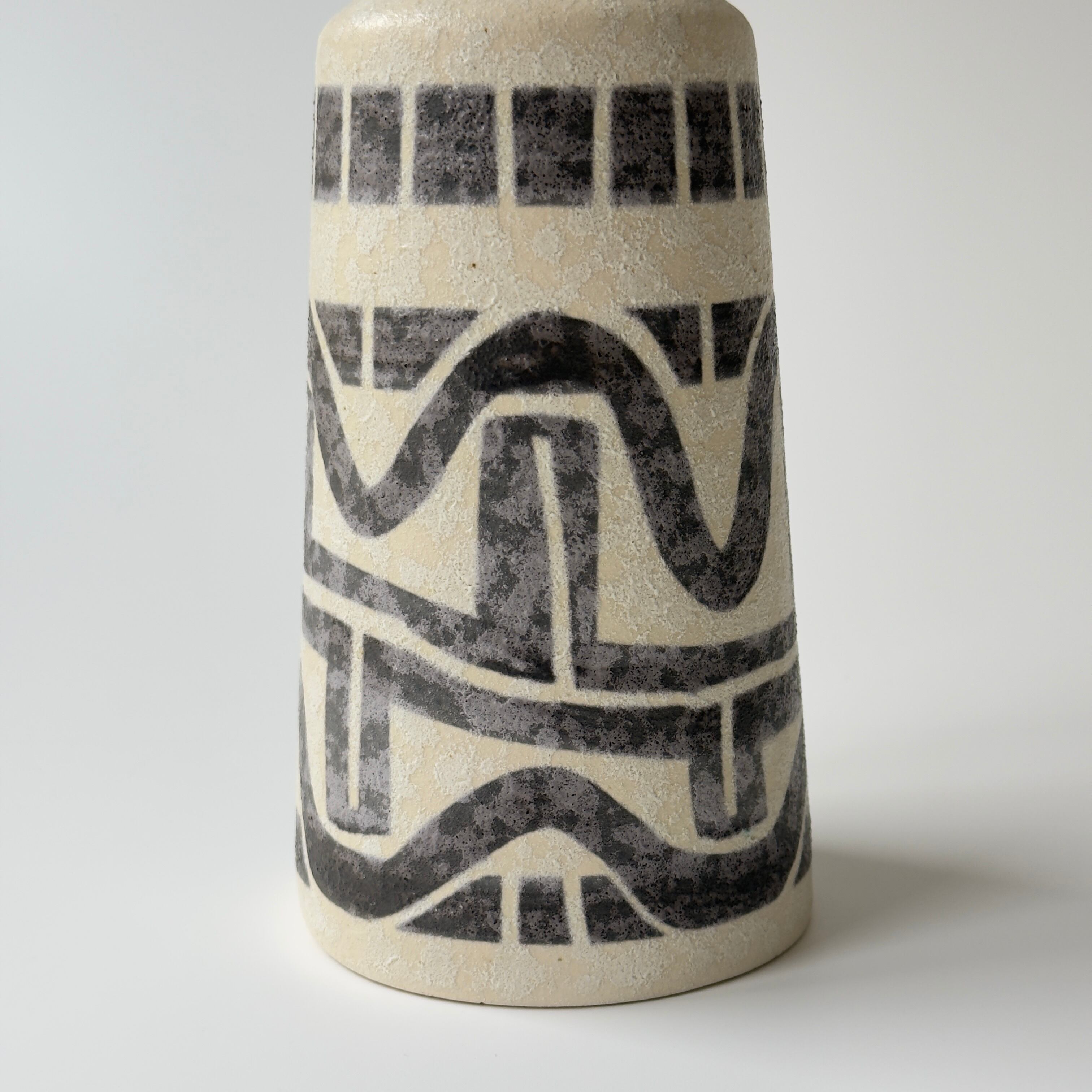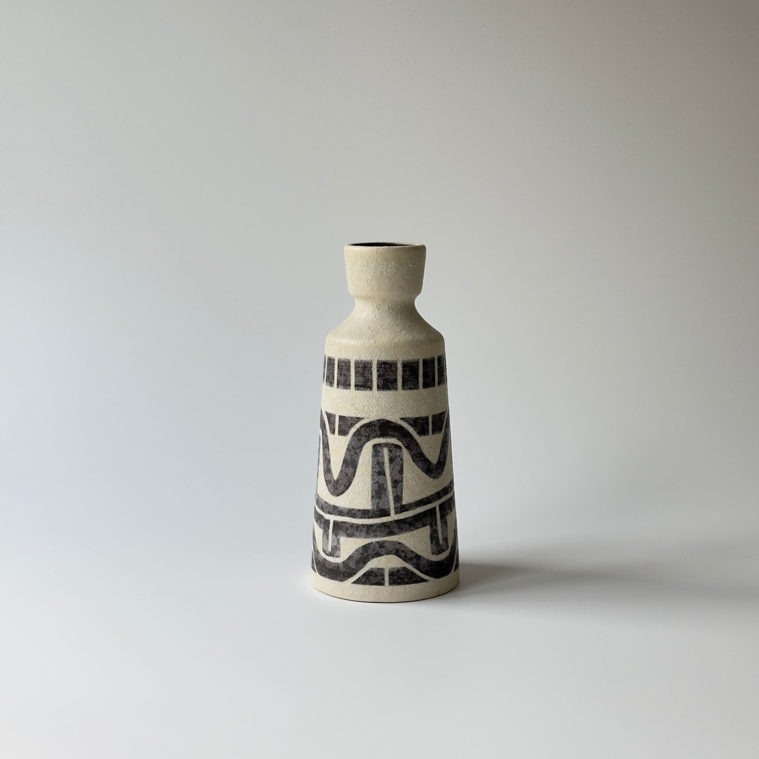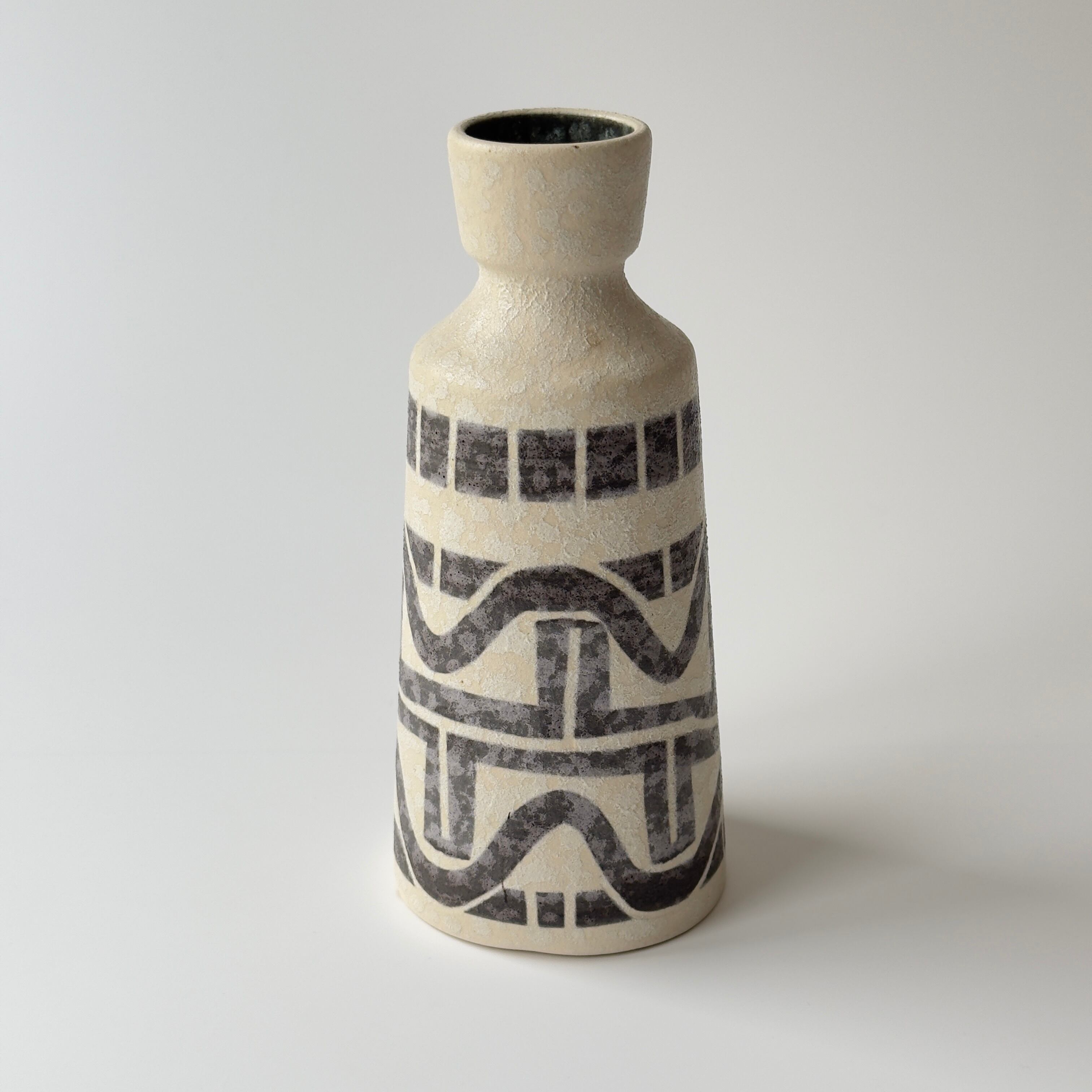 モノトーンカラーでモダンなパターンの花瓶です。表面はザラザラとしたマットな仕上がりとなっています。