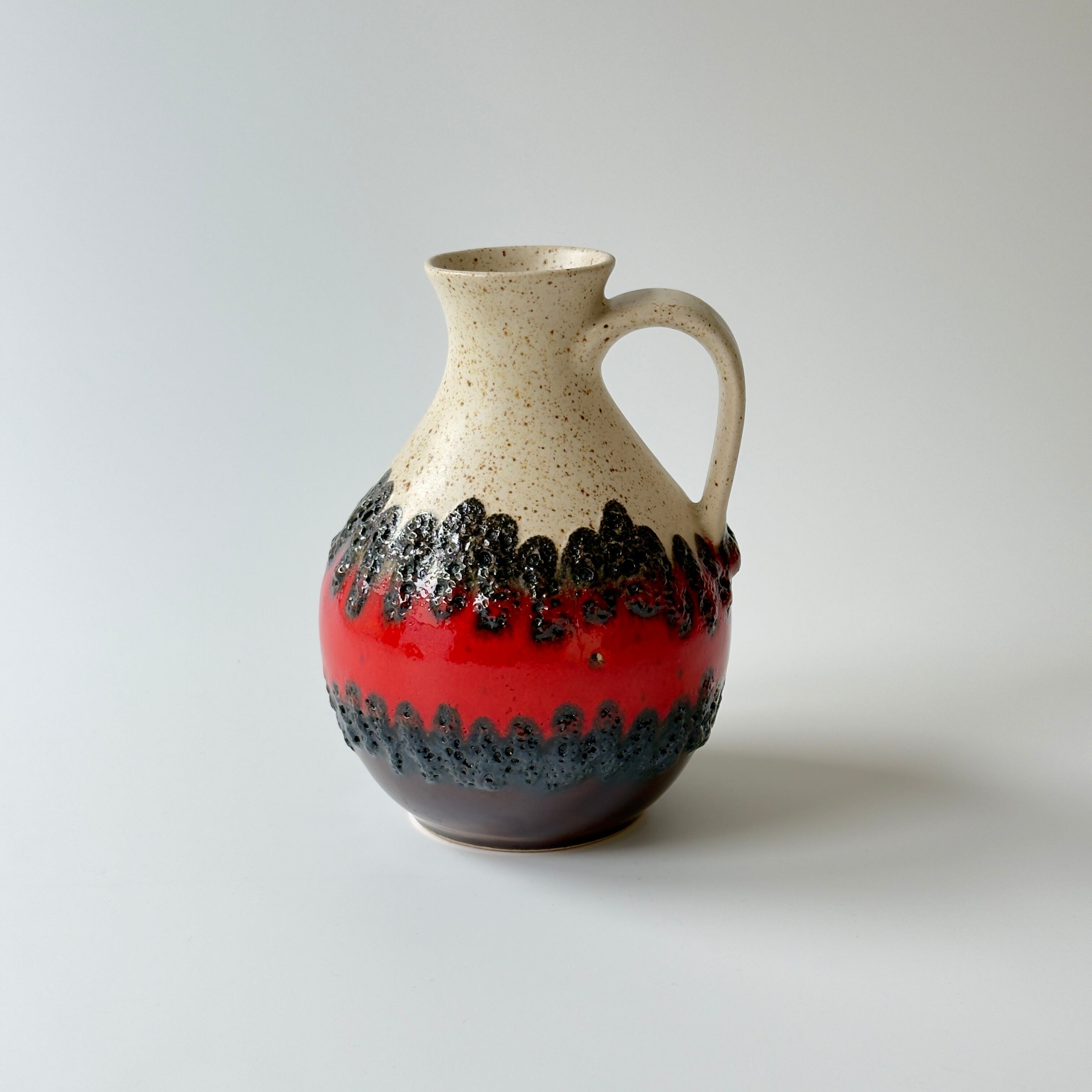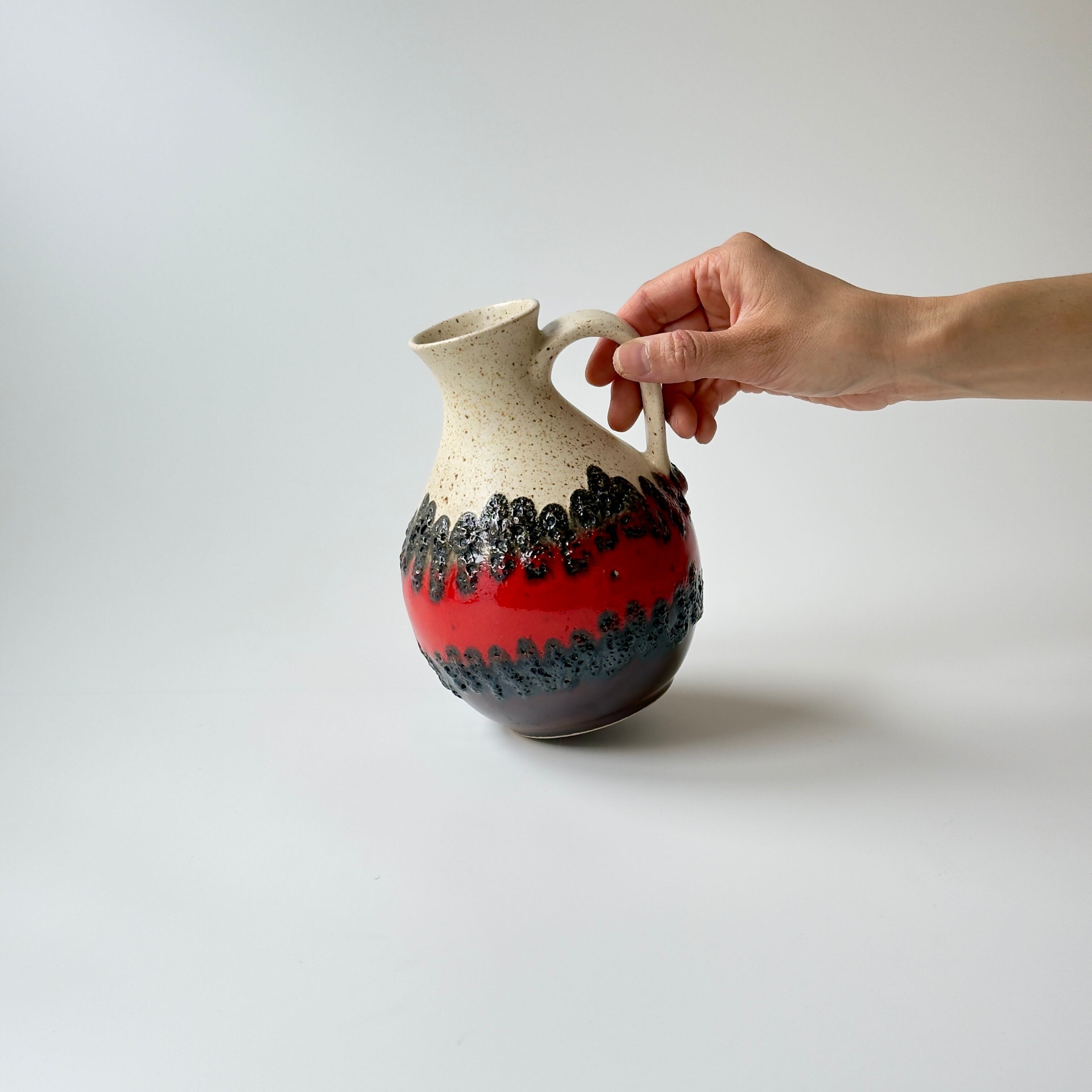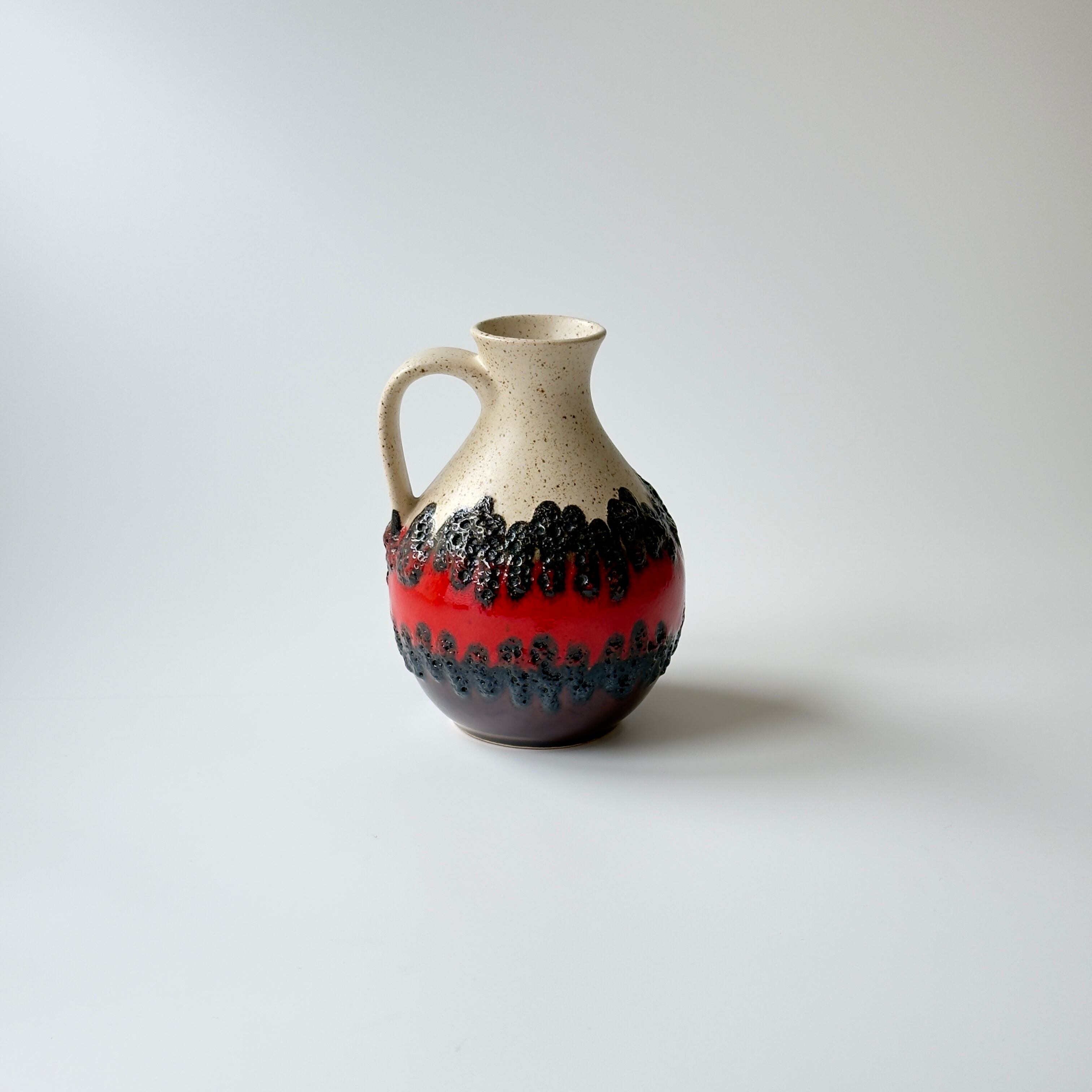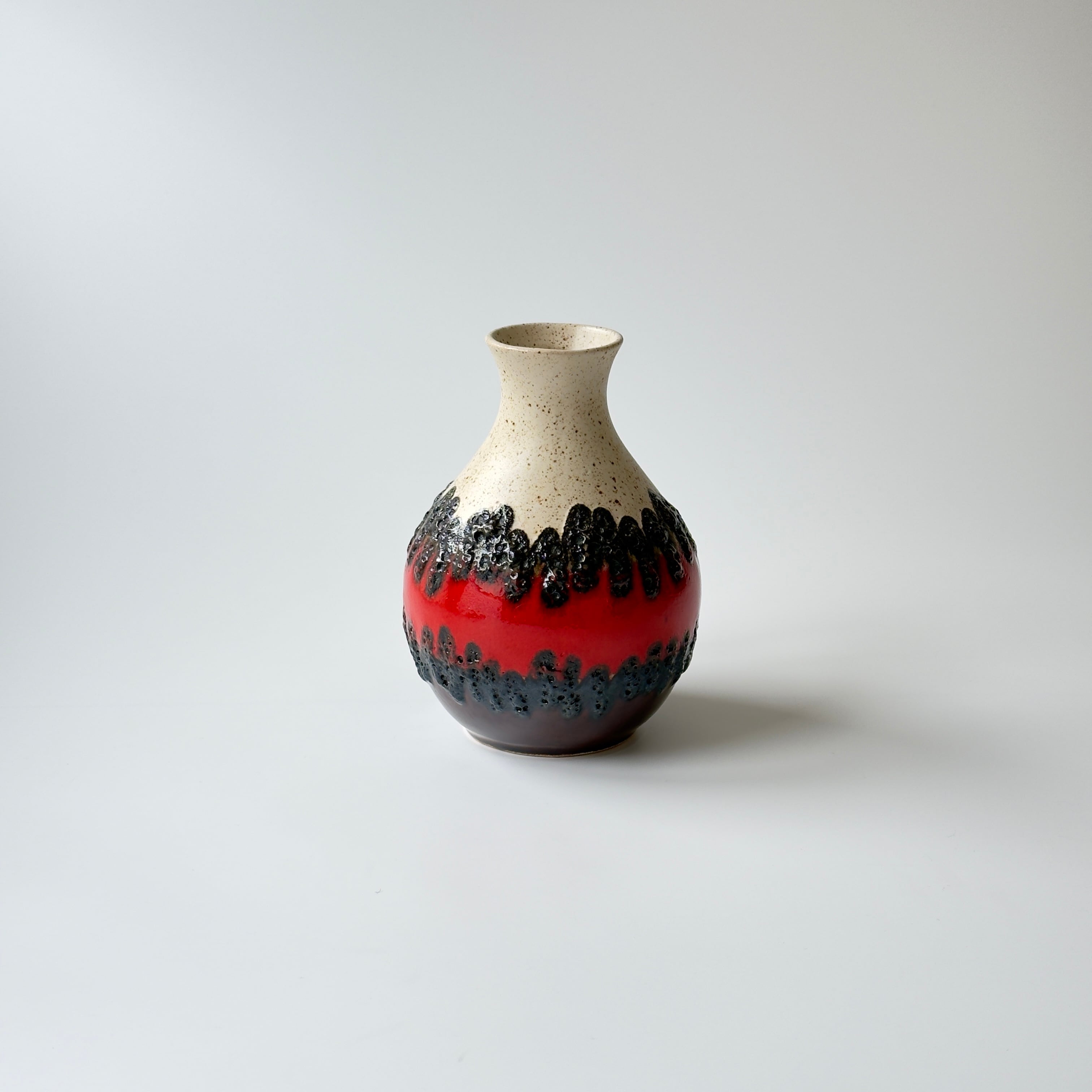 艶感のある赤の釉薬とジグザクの漆黒のFat Lavaが織りなすユニークなデザインの花瓶です。