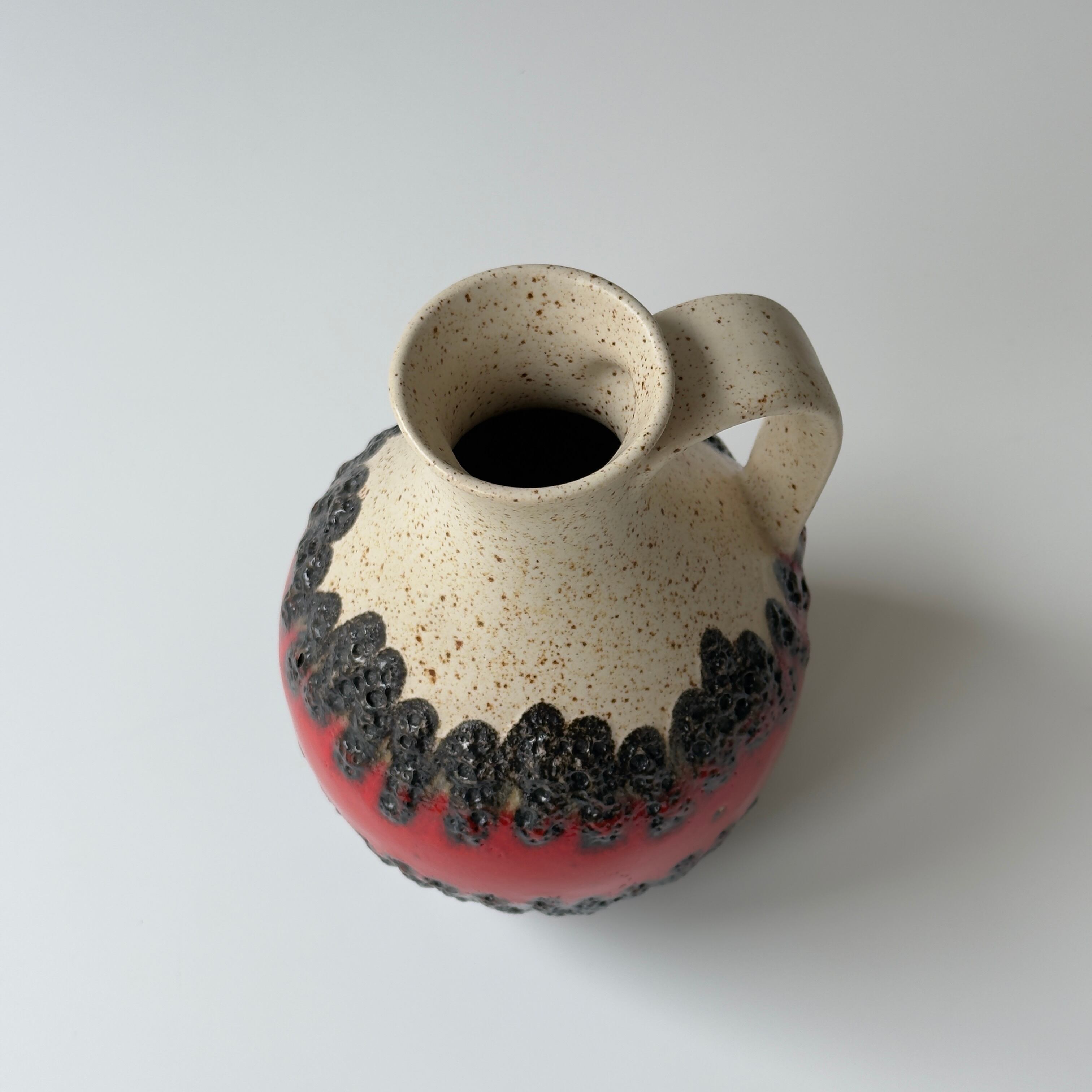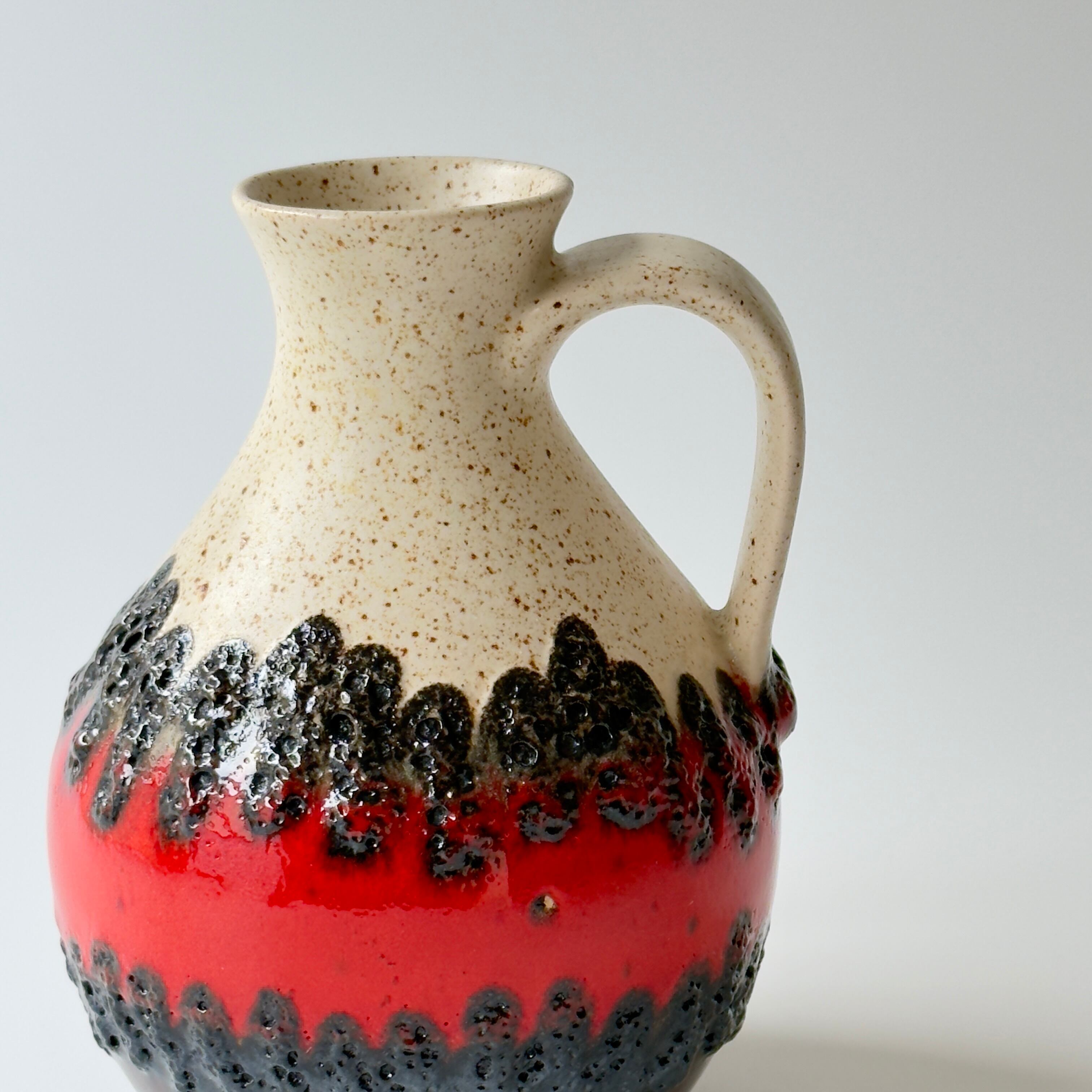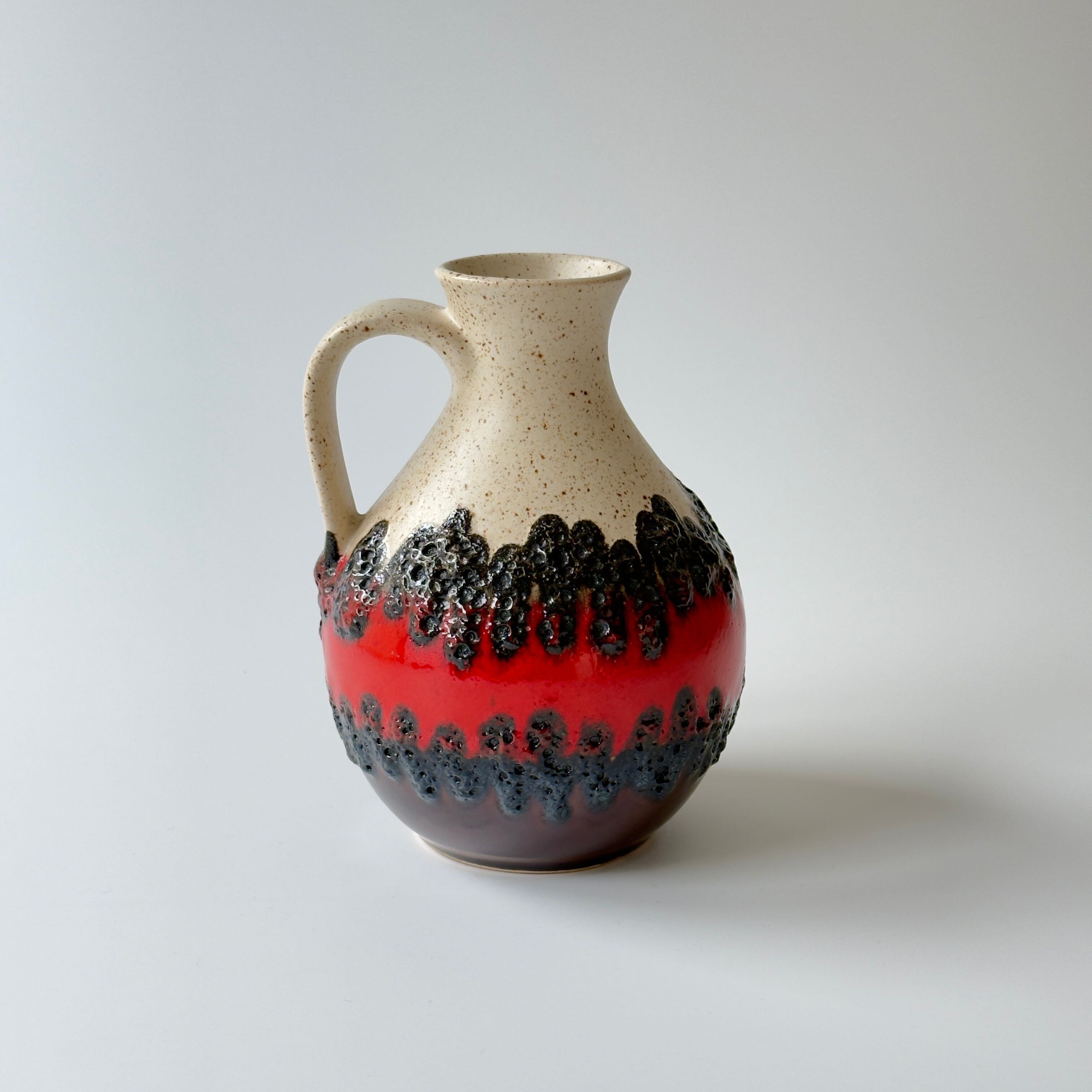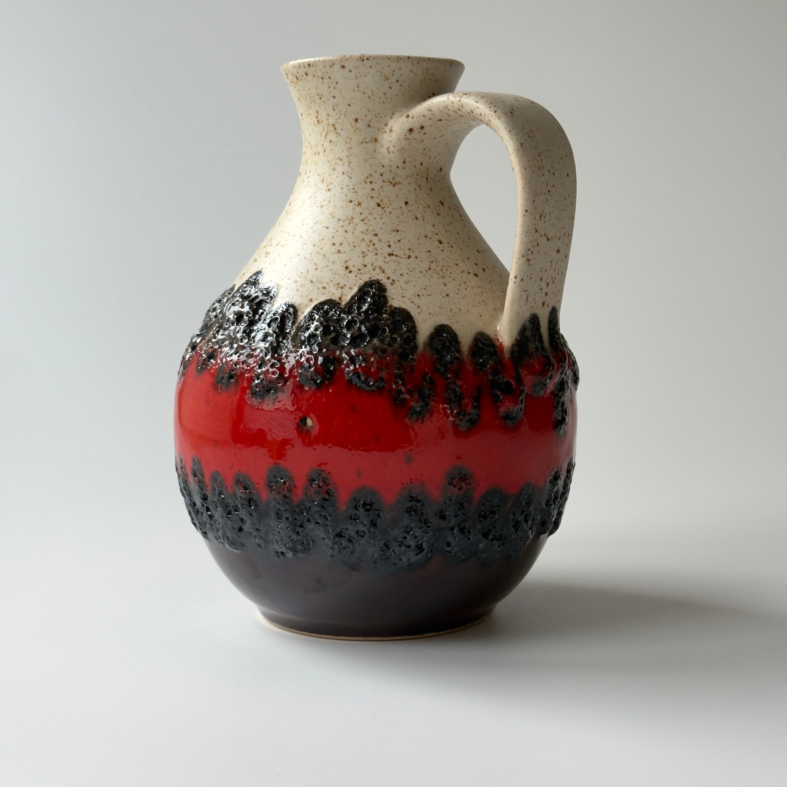 艶感のある赤の釉薬とジグザクの漆黒のFat Lavaが織りなすユニークなデザインの花瓶です。