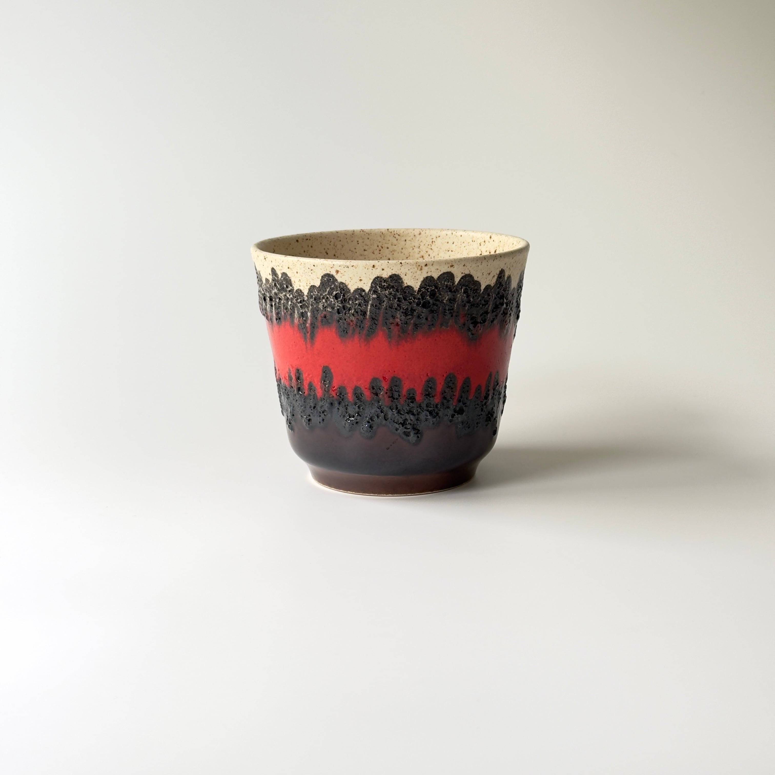 艶感のある明るい赤の釉薬とジグザクの漆黒のFat Lavaが織りなすユニークなデザイン。