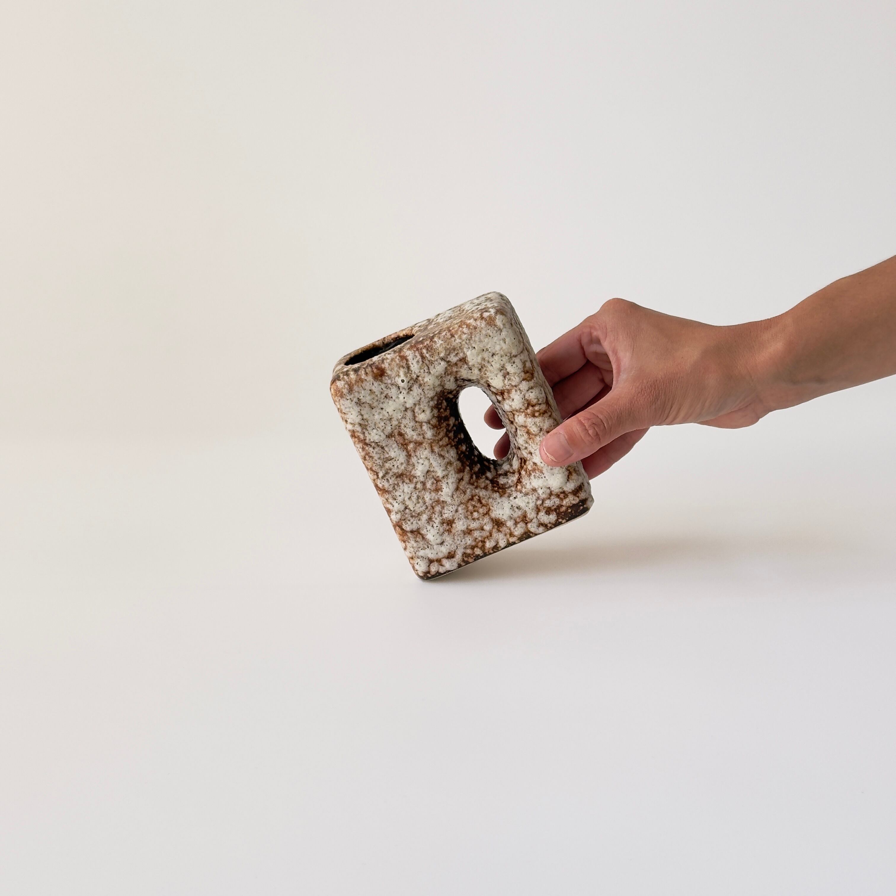 独自の釉薬が、ドイツのFatLavaのような泡状の溶岩のようなユニークな質感を生み出しています。中心の穴がユニークで花瓶という域を超えたデザイン性の高さからオブジェとしても人気があるメーカーです。
