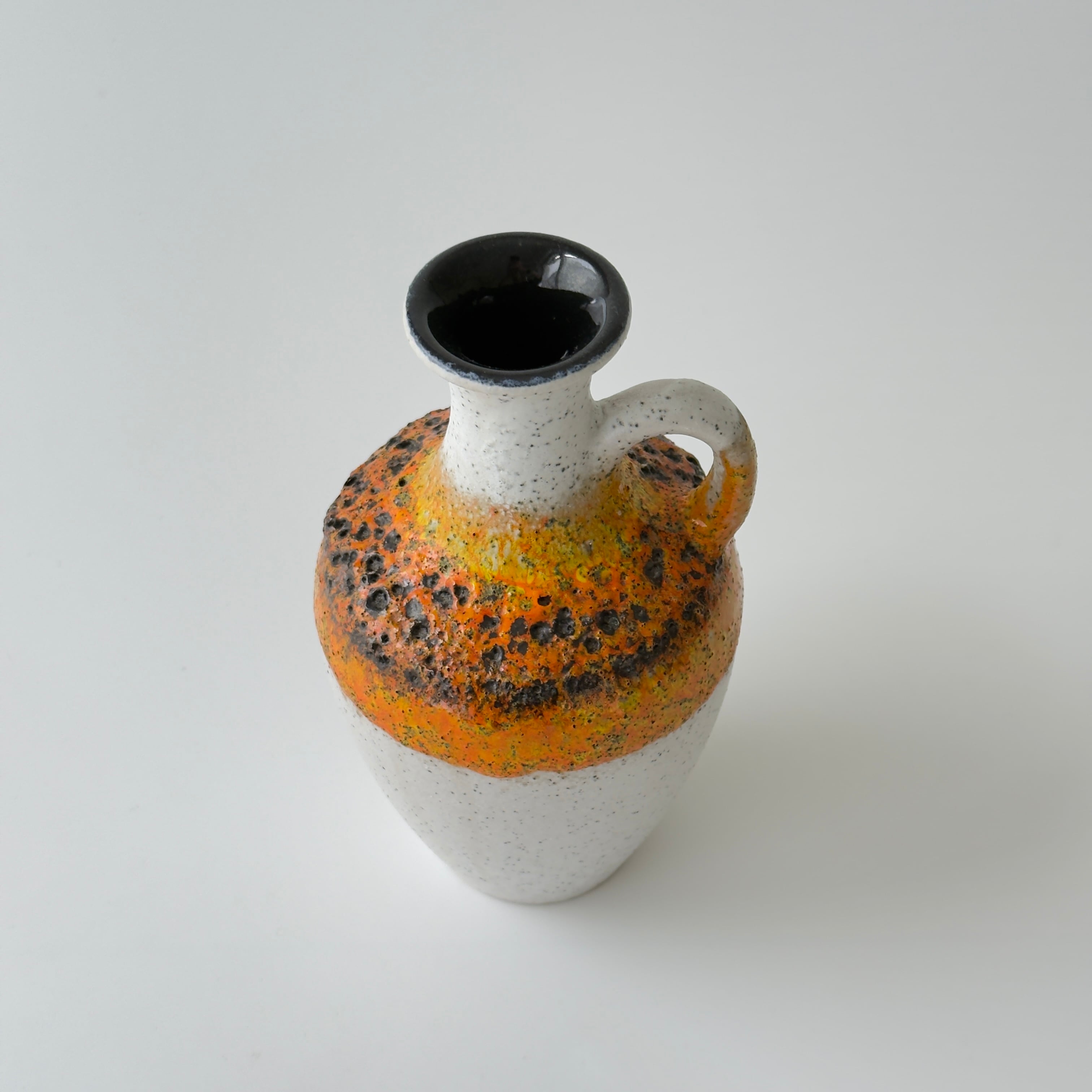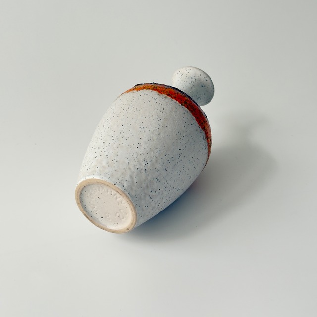 薄いグレーに鮮やかなオレンジのグラデーションのFatLavaの釉薬が美しい花瓶です。