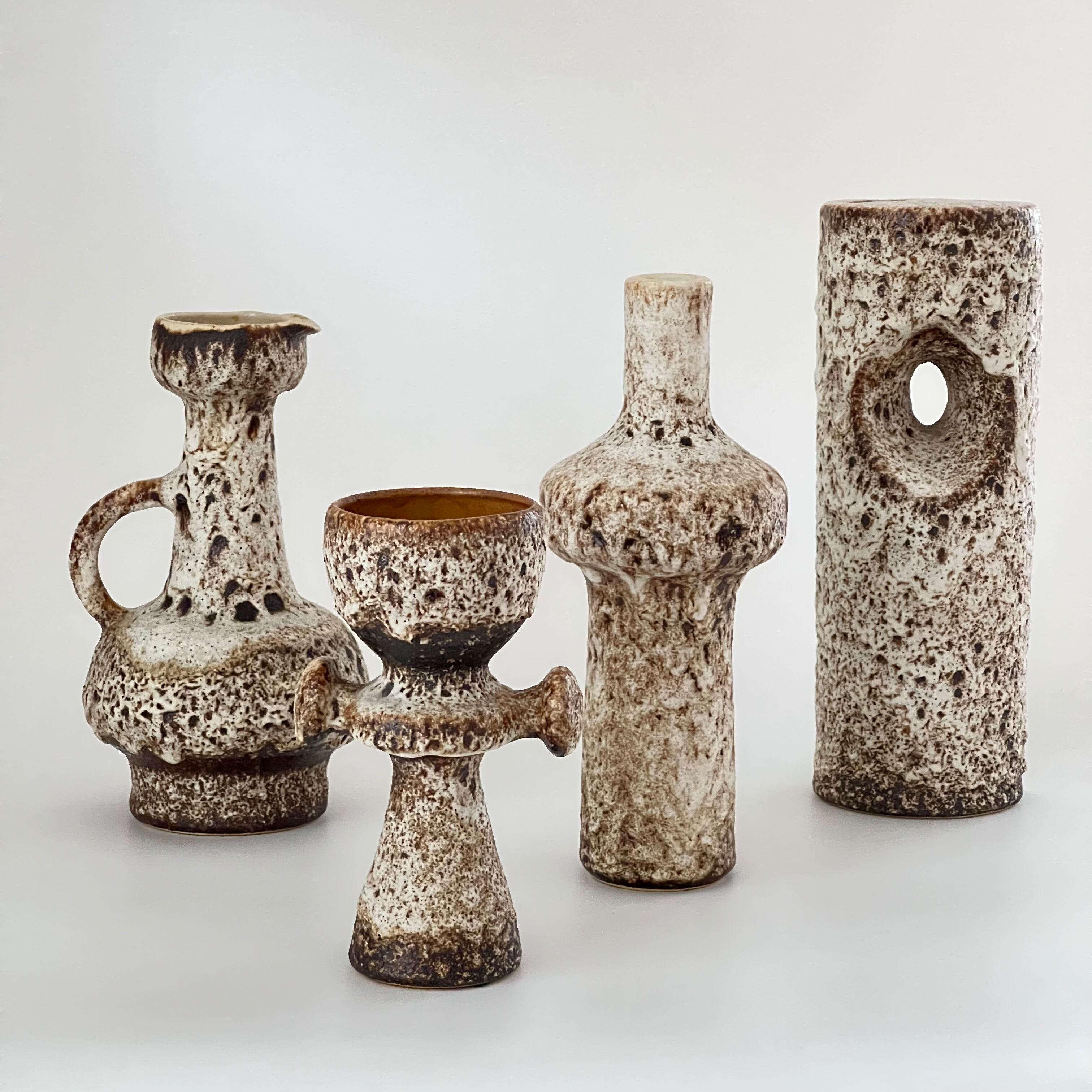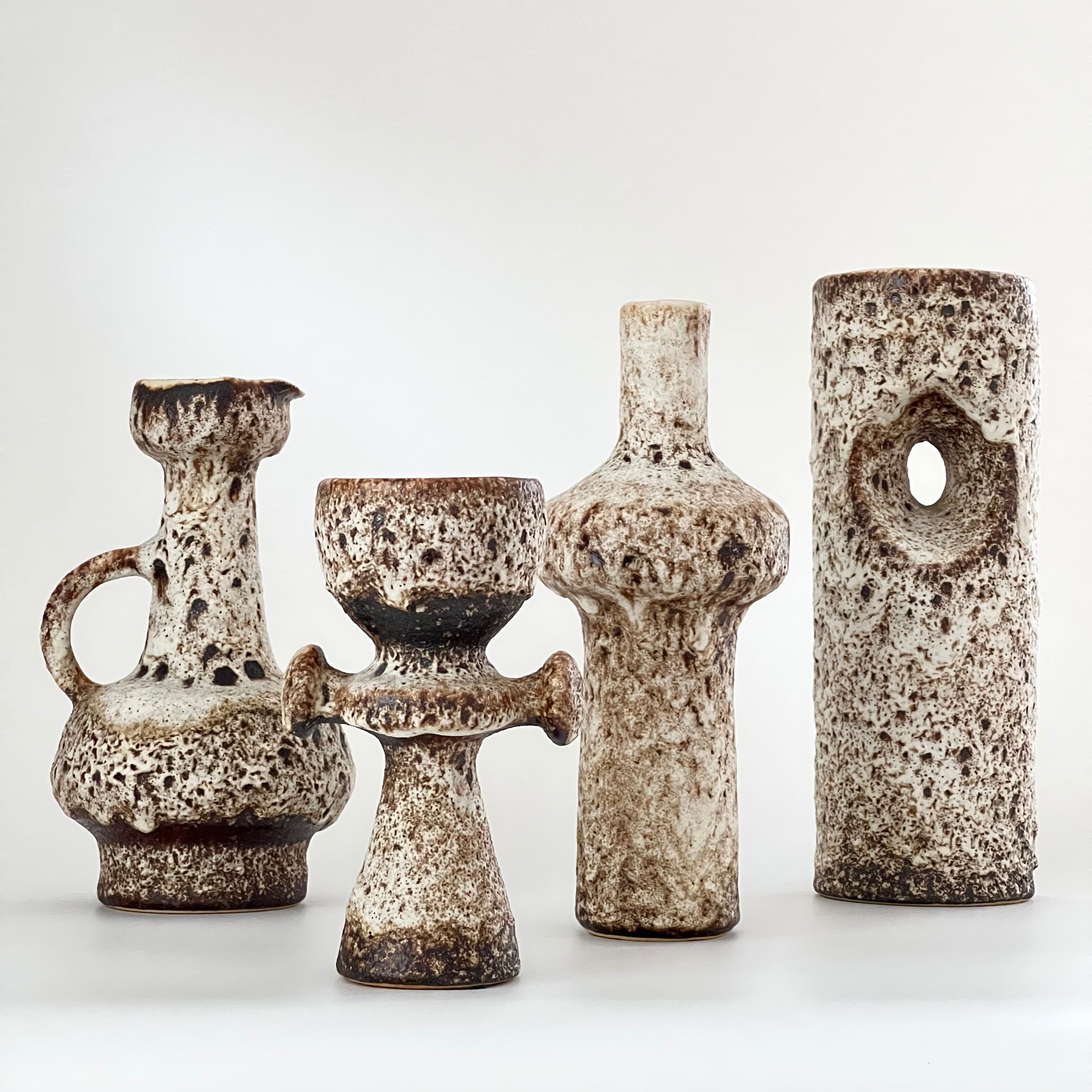 1970年代に流行していたアースカラーを起用して、釉薬でゴツゴツした独自の質感を出すために、窯の酸素濃度を低くして作られてます。溶岩状のFatLavaによく似た作品が多く、FatLavaブームの火付け役に一役買ってます。