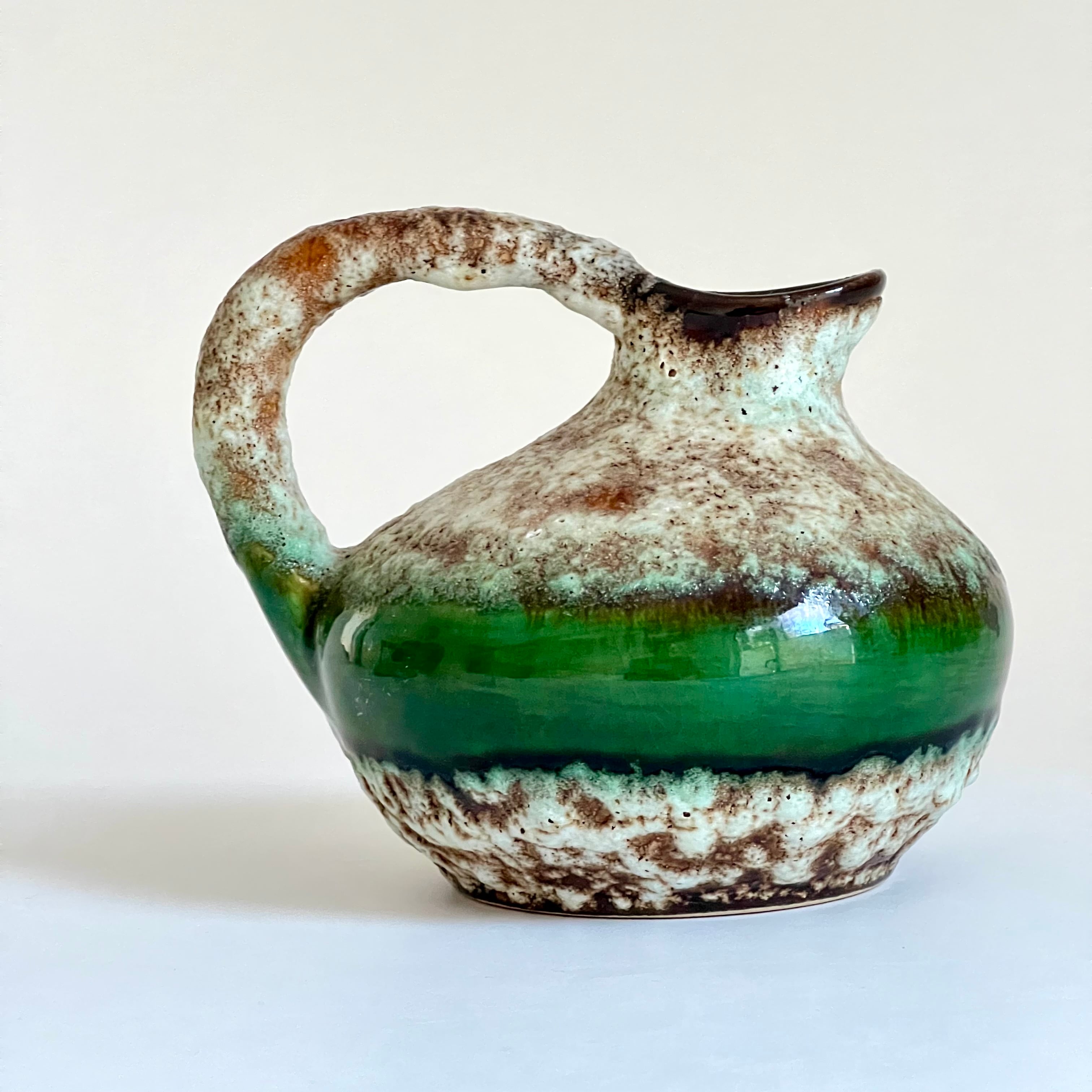 ゴツゴツとしたベージュのFat Lavaに艶感のある緑色が美しい一品です。
