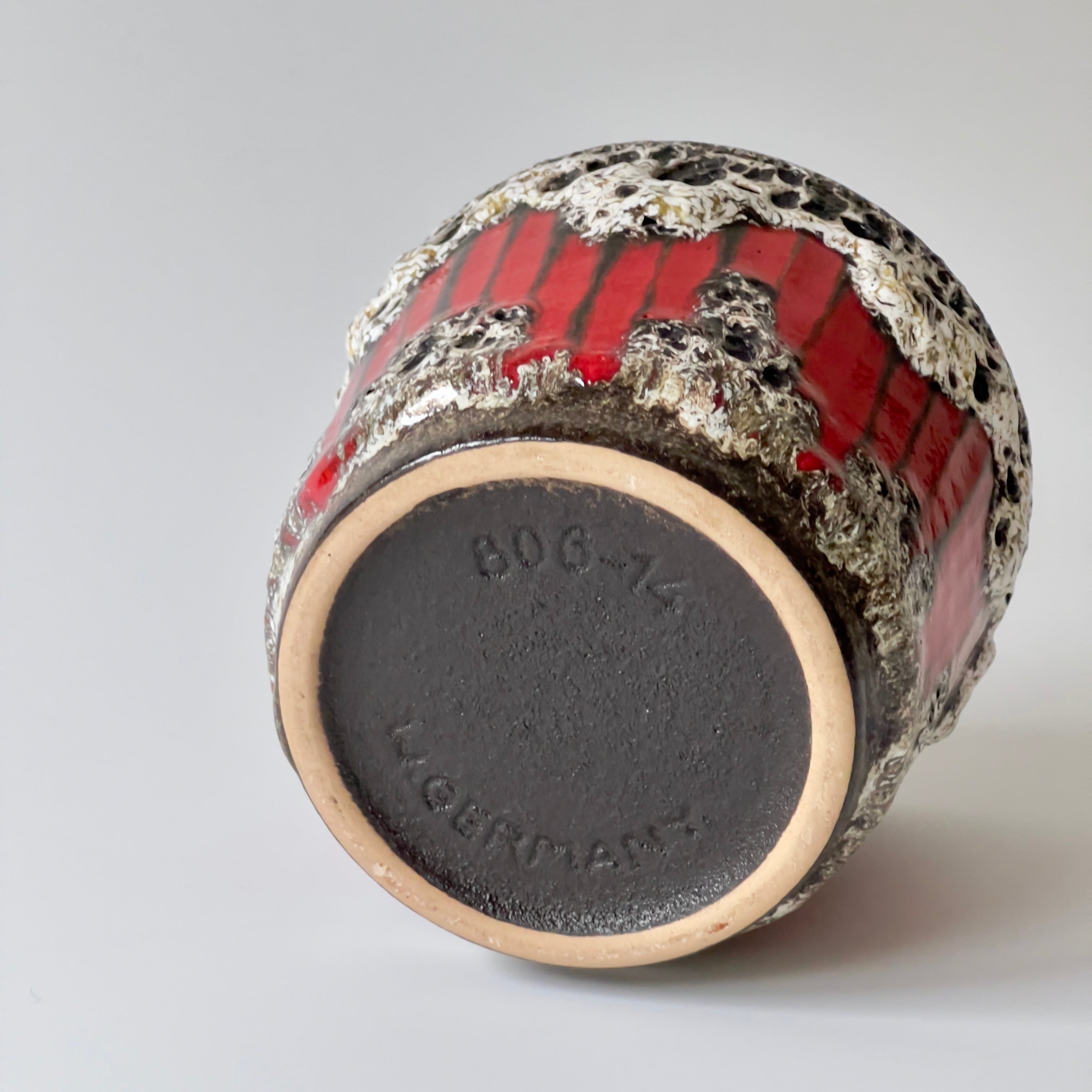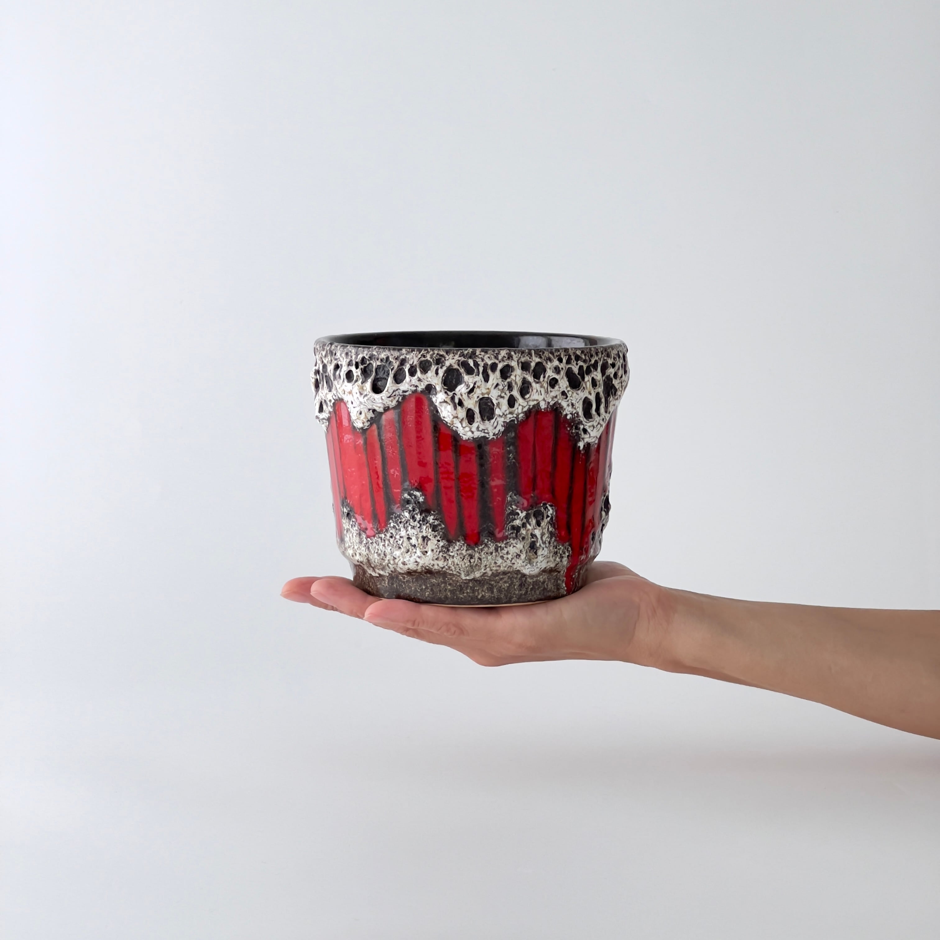 "West German Art Pottery"を語る上で欠かせない大手メーカーScheurich社から人気シリーズ ”Lora” の高さ11㎝ほどの小さめな鉢カバーが入荷しました。