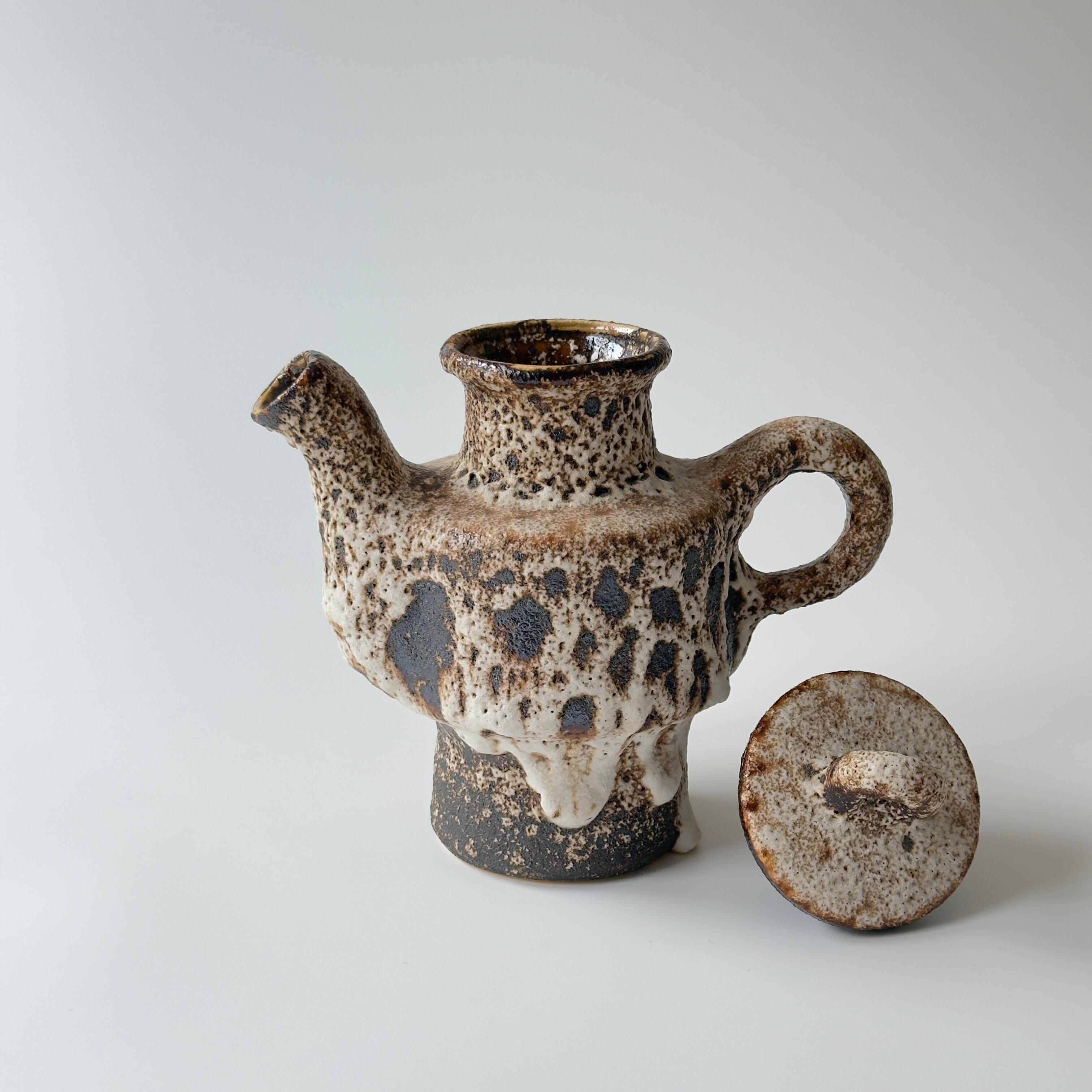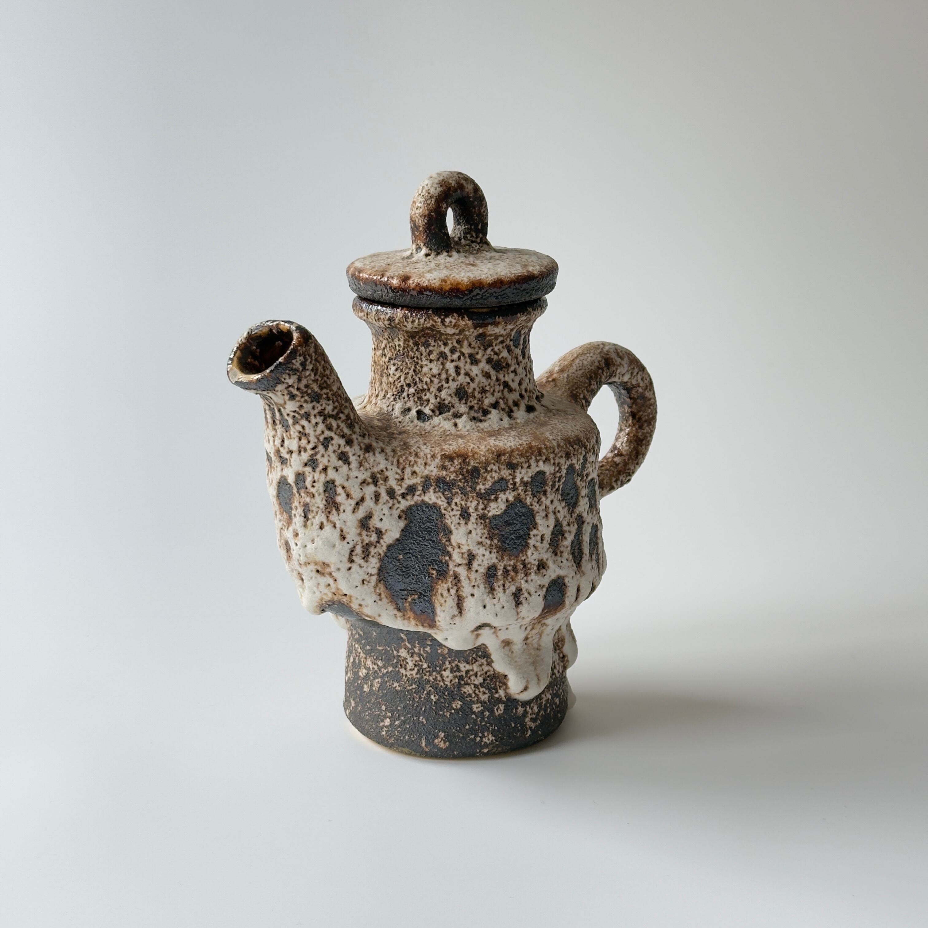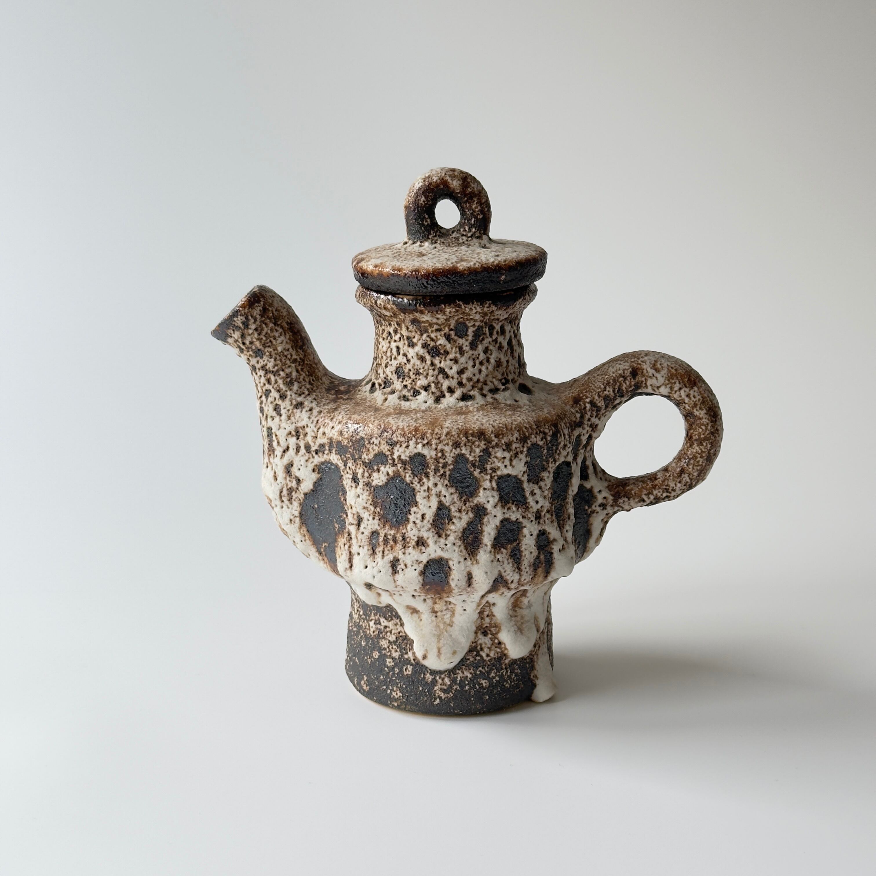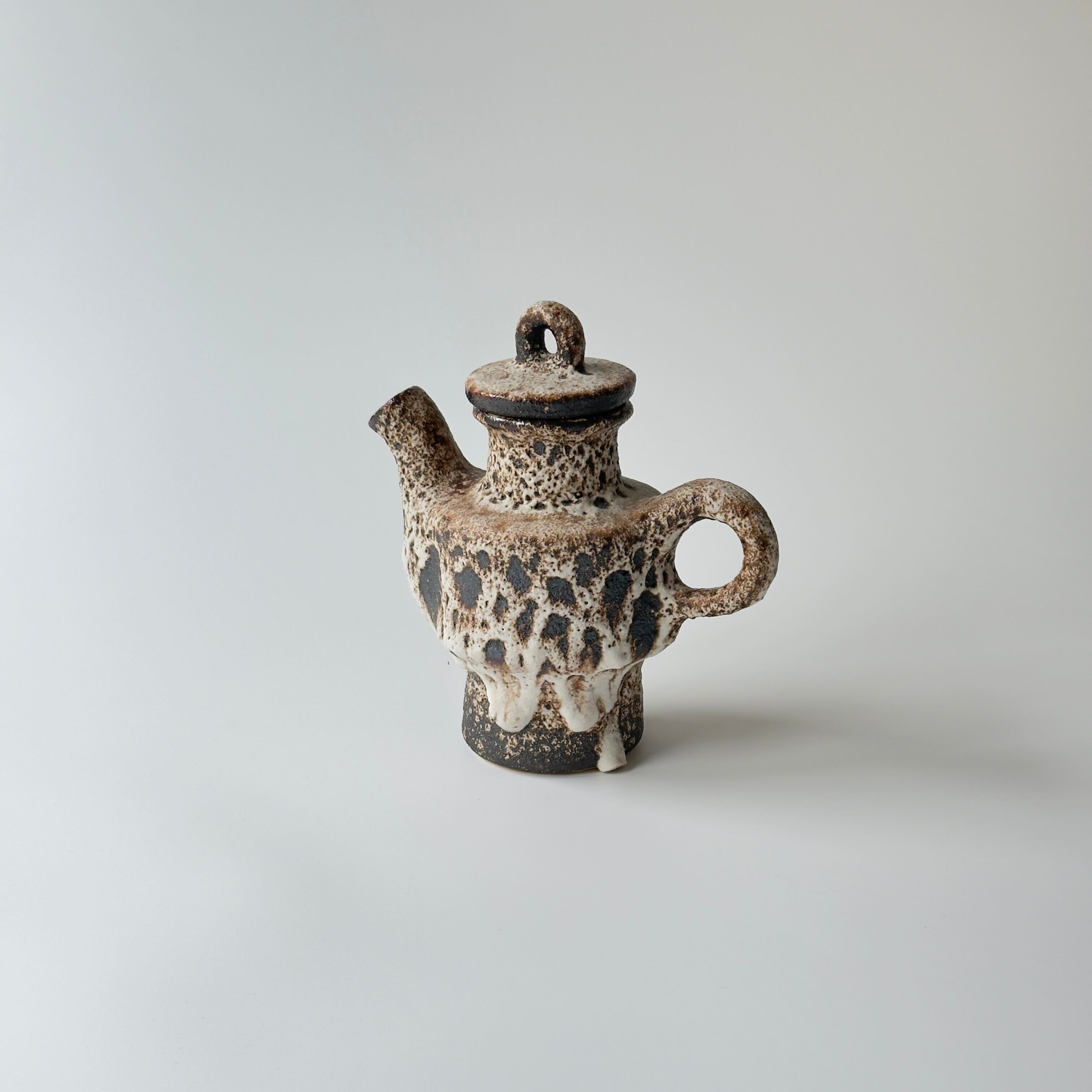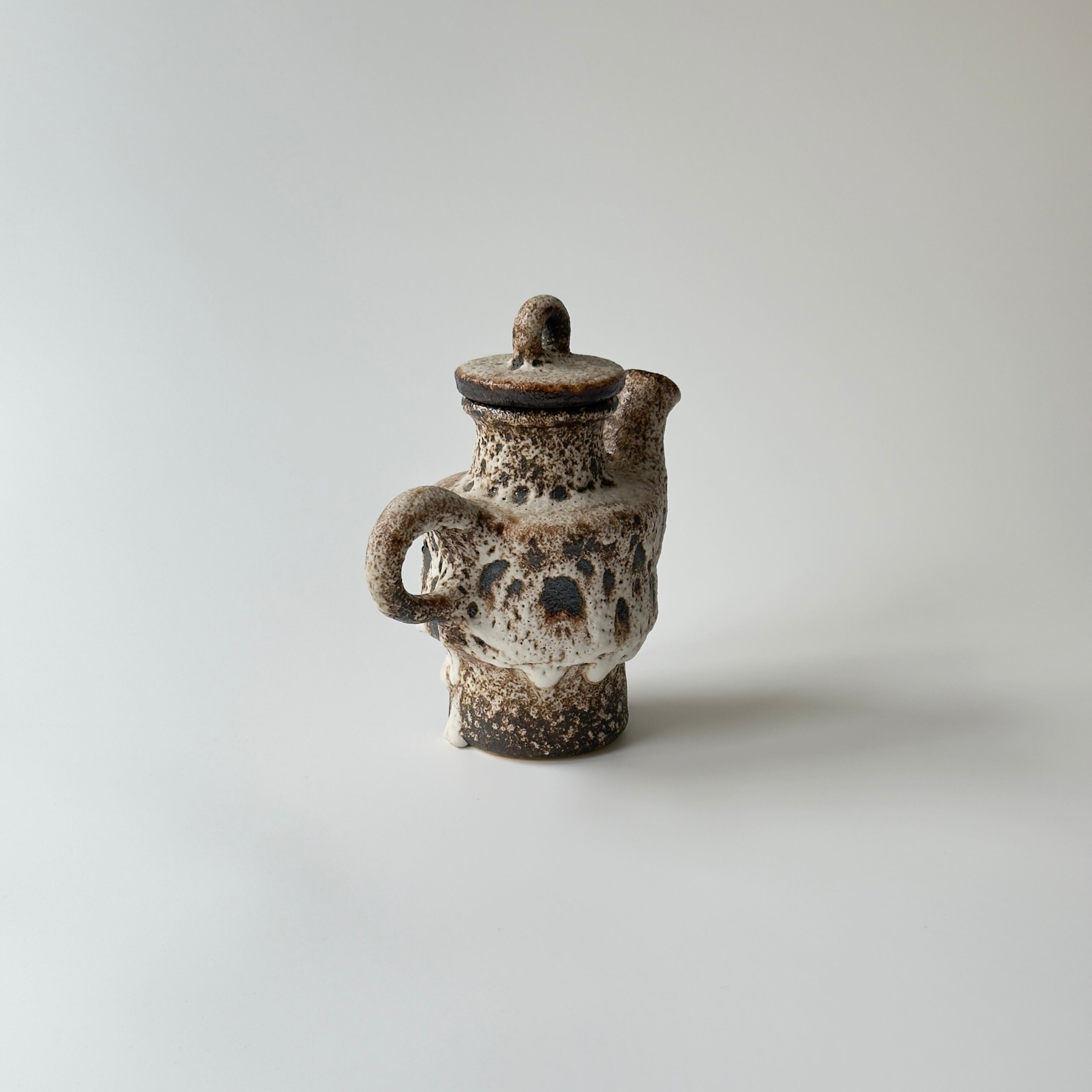 蓋付きの急須型となっています。独自の釉薬が、泡状の溶岩のようなユニークな質感を生み出しています。また形状も花瓶という域を超えたデザイン性の高さからオブジェとしても人気があります。