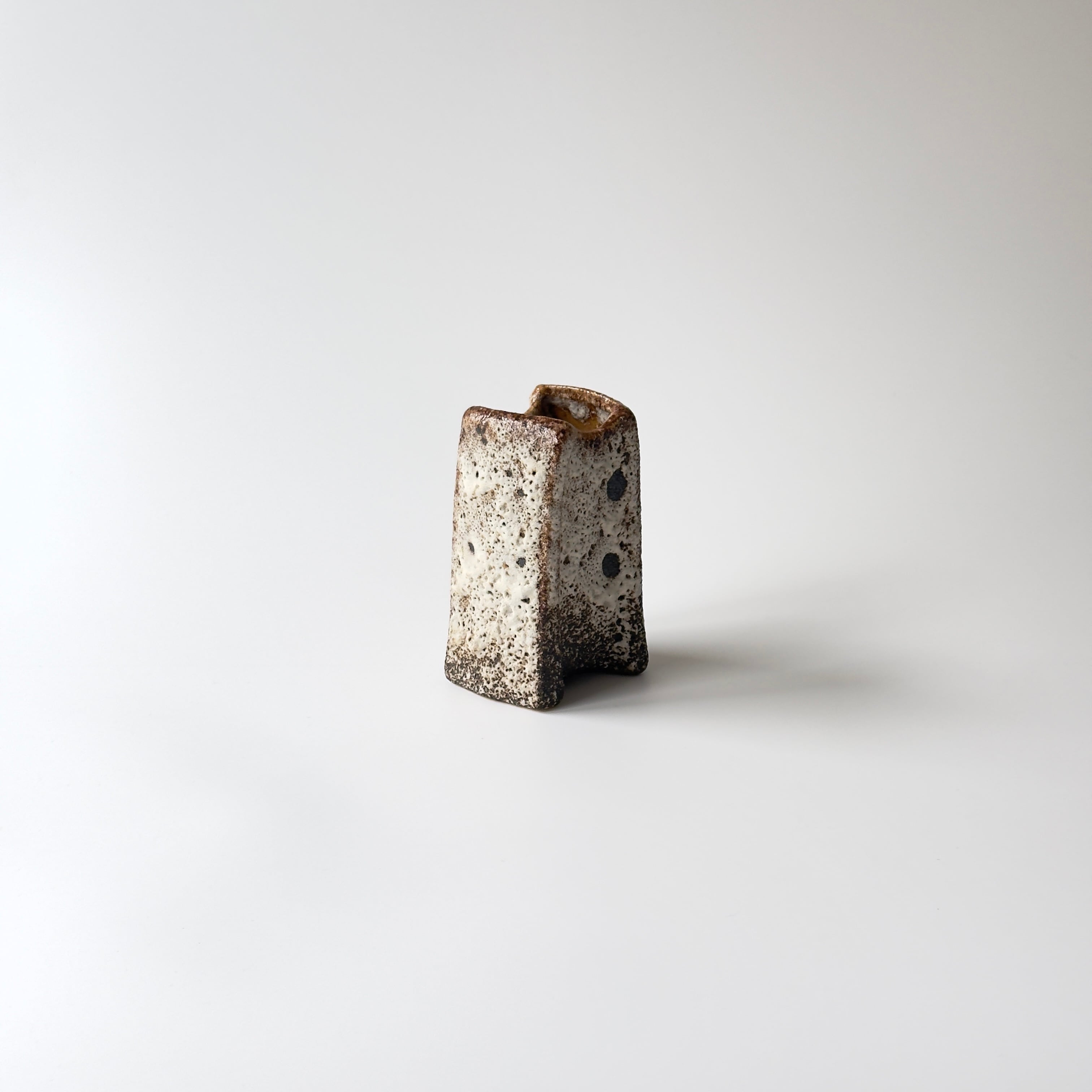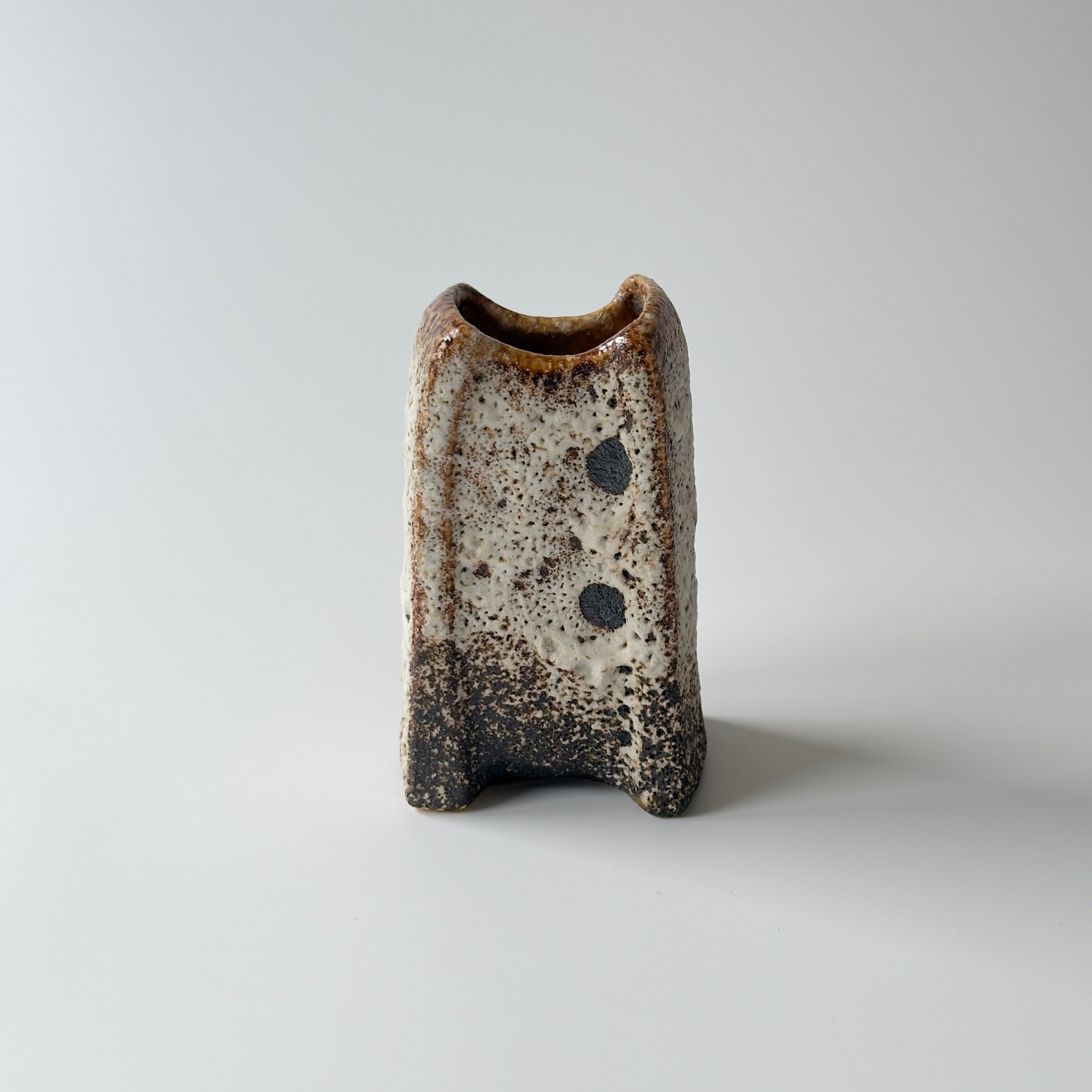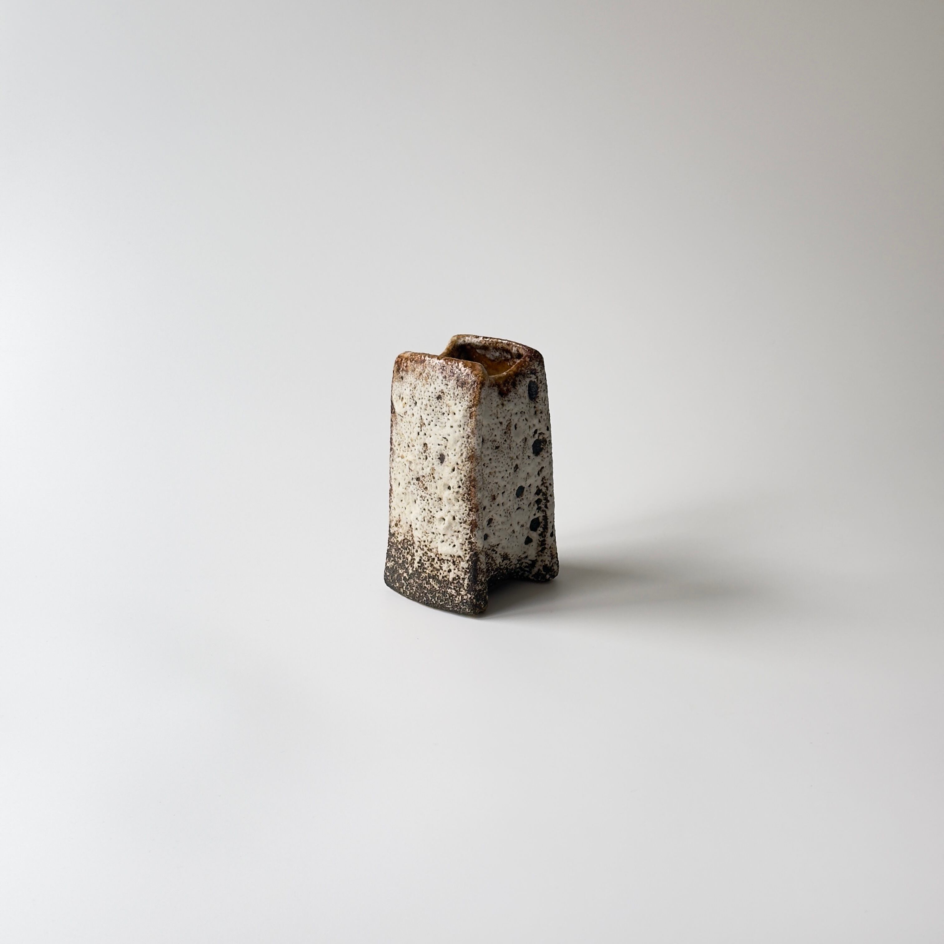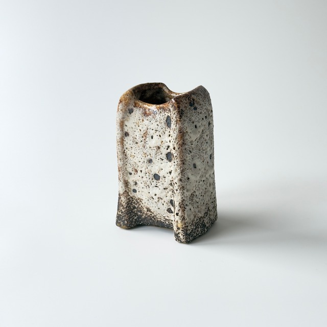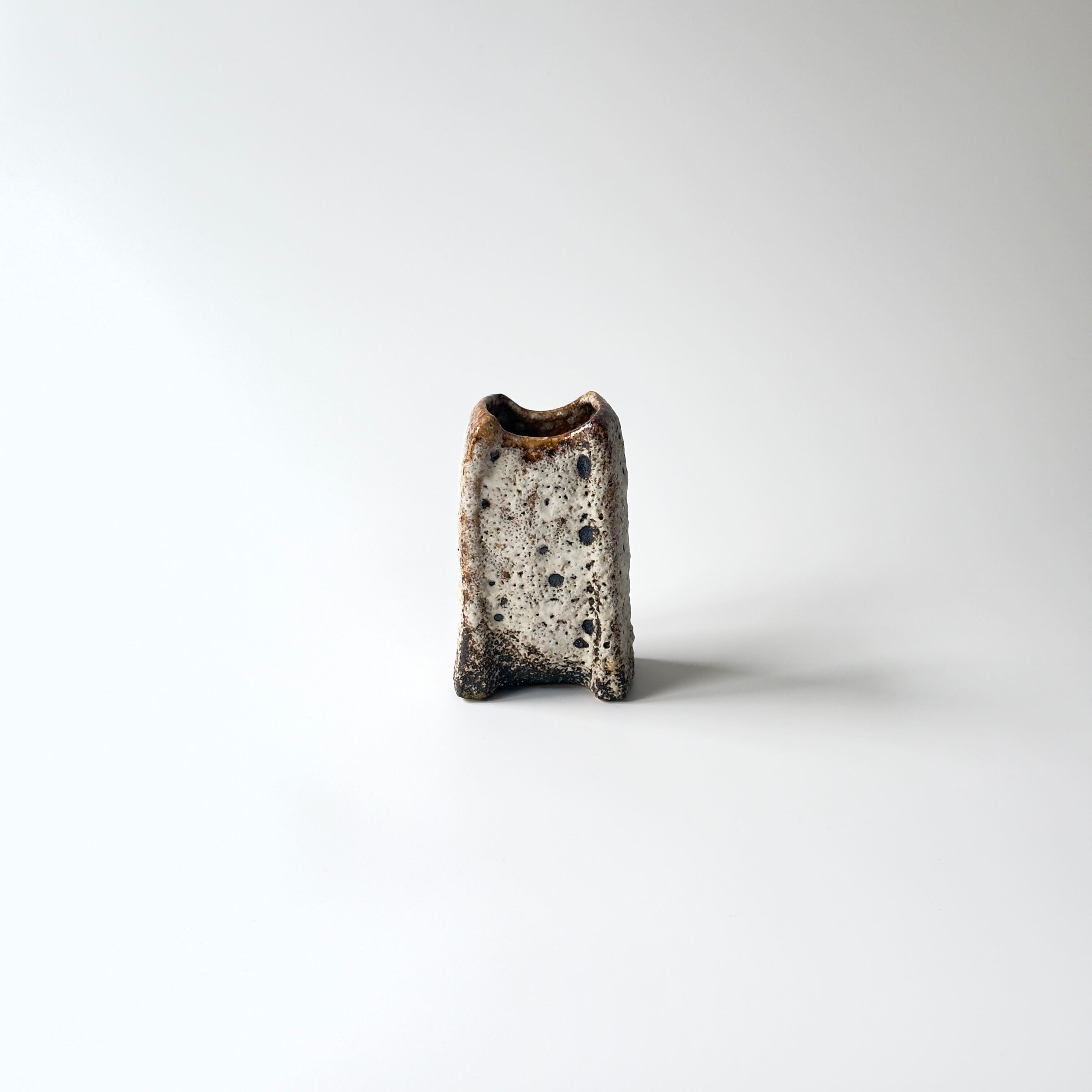 独自の釉薬が、泡状の溶岩のようなユニークな質感を生み出しています。また形状も花瓶という域を超えたデザイン性の高さからオブジェとしても人気があります。