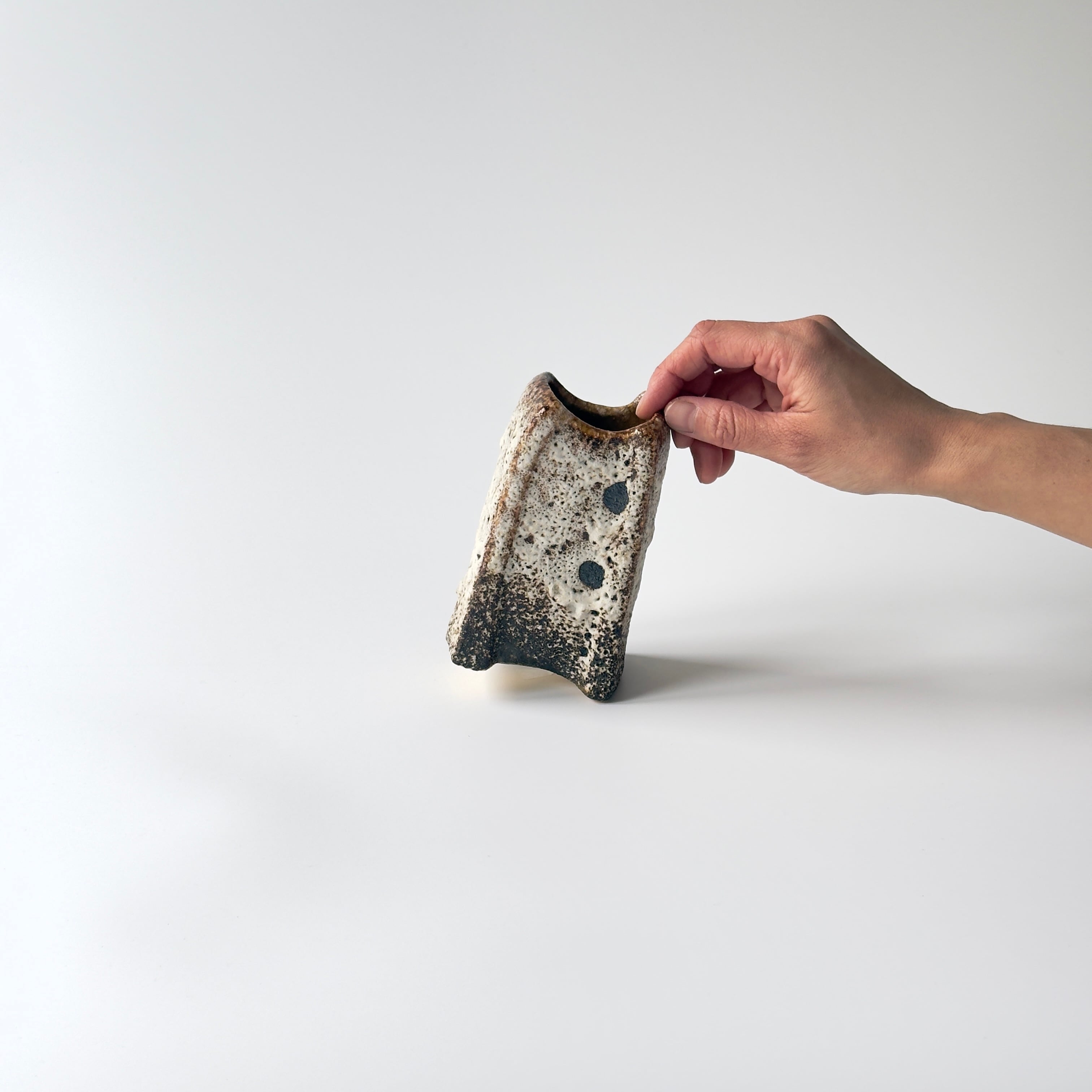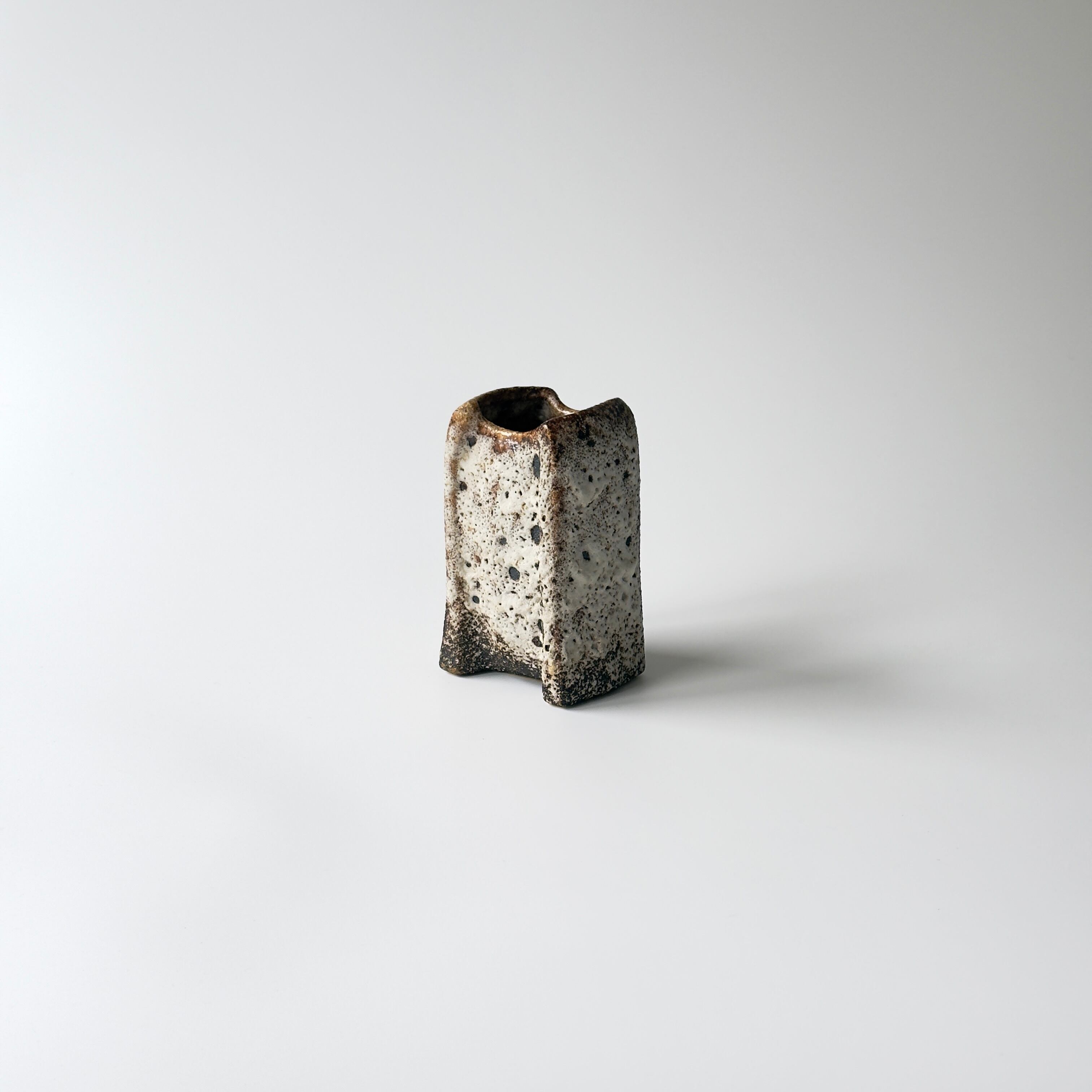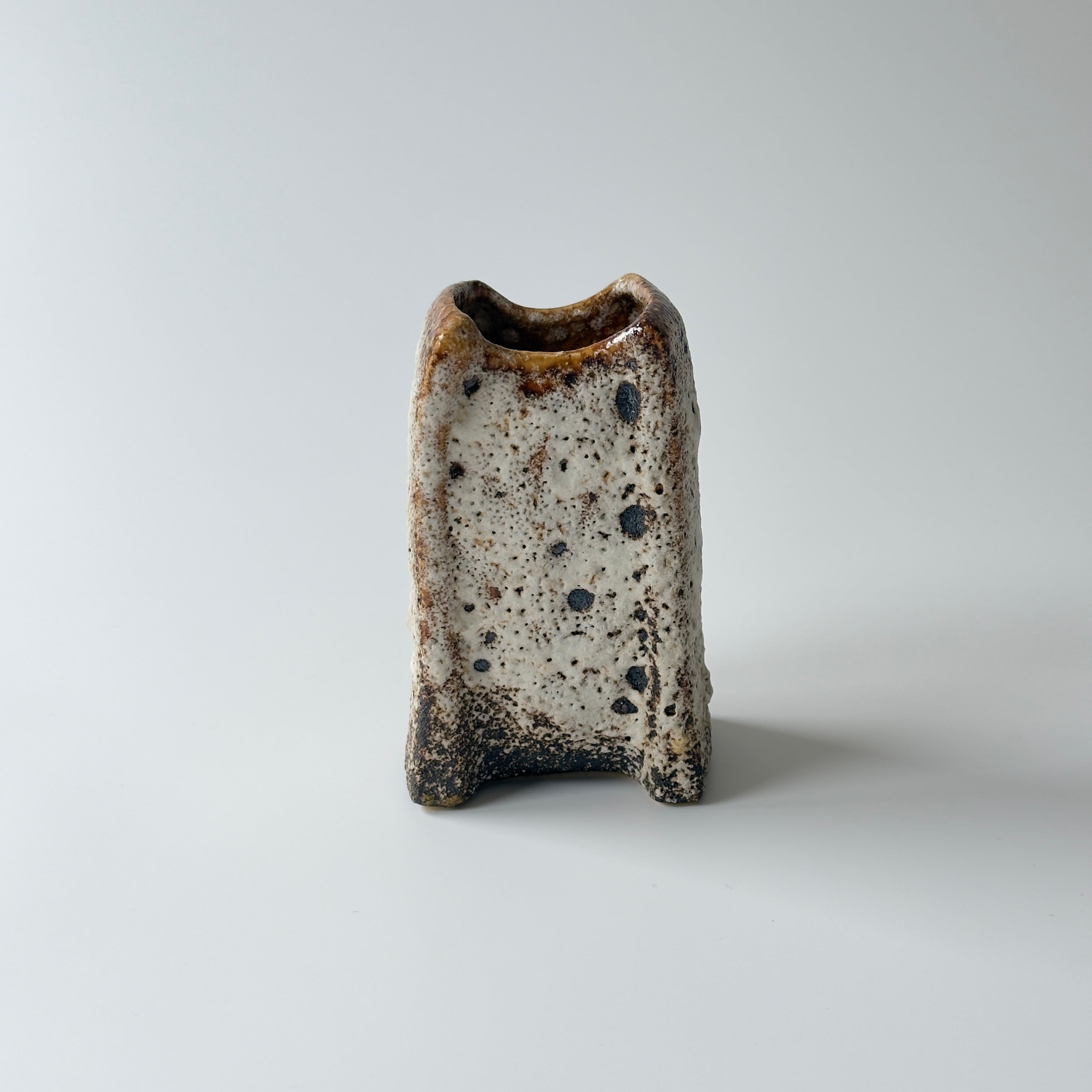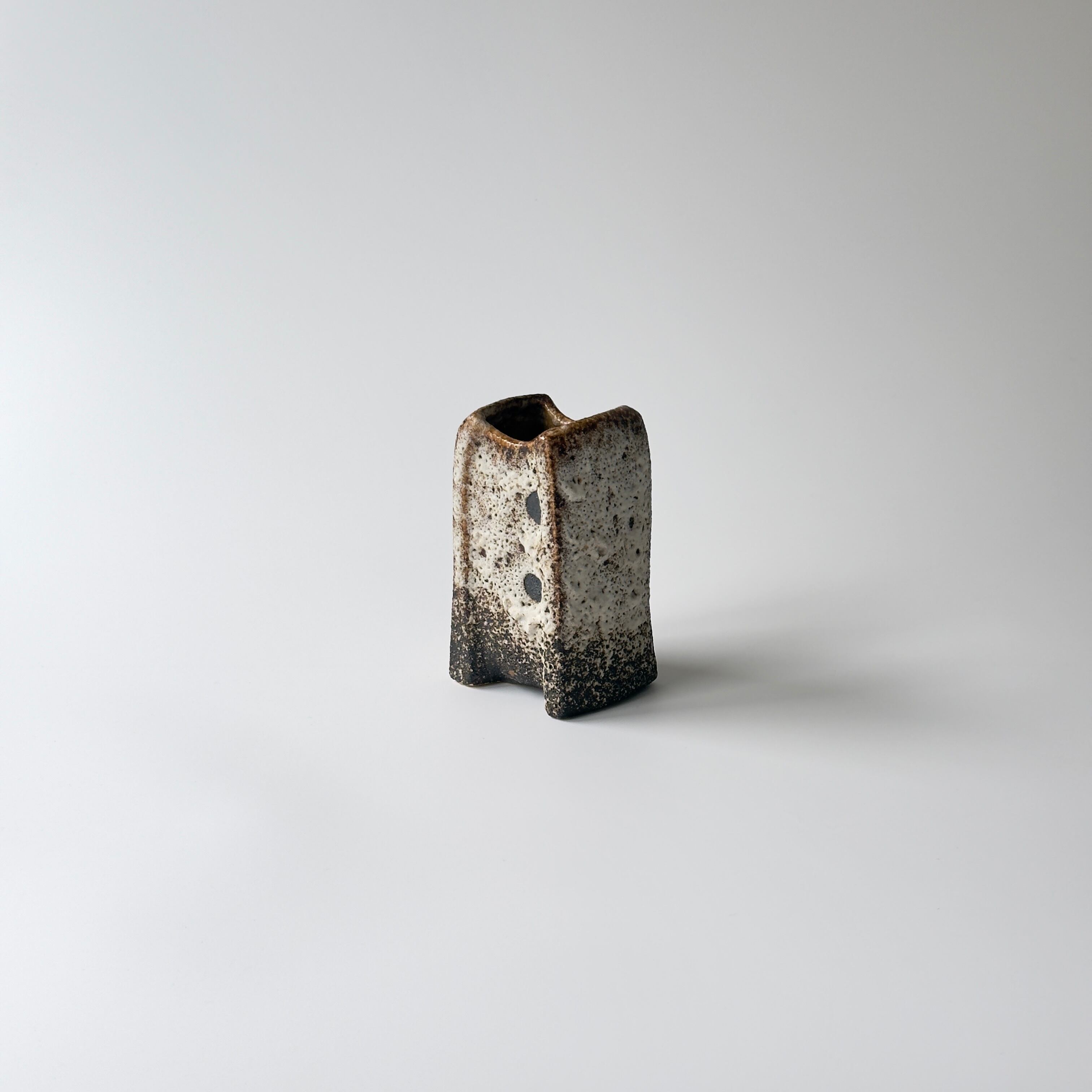 独自の釉薬が、泡状の溶岩のようなユニークな質感を生み出しています。また形状も花瓶という域を超えたデザイン性の高さからオブジェとしても人気があります。