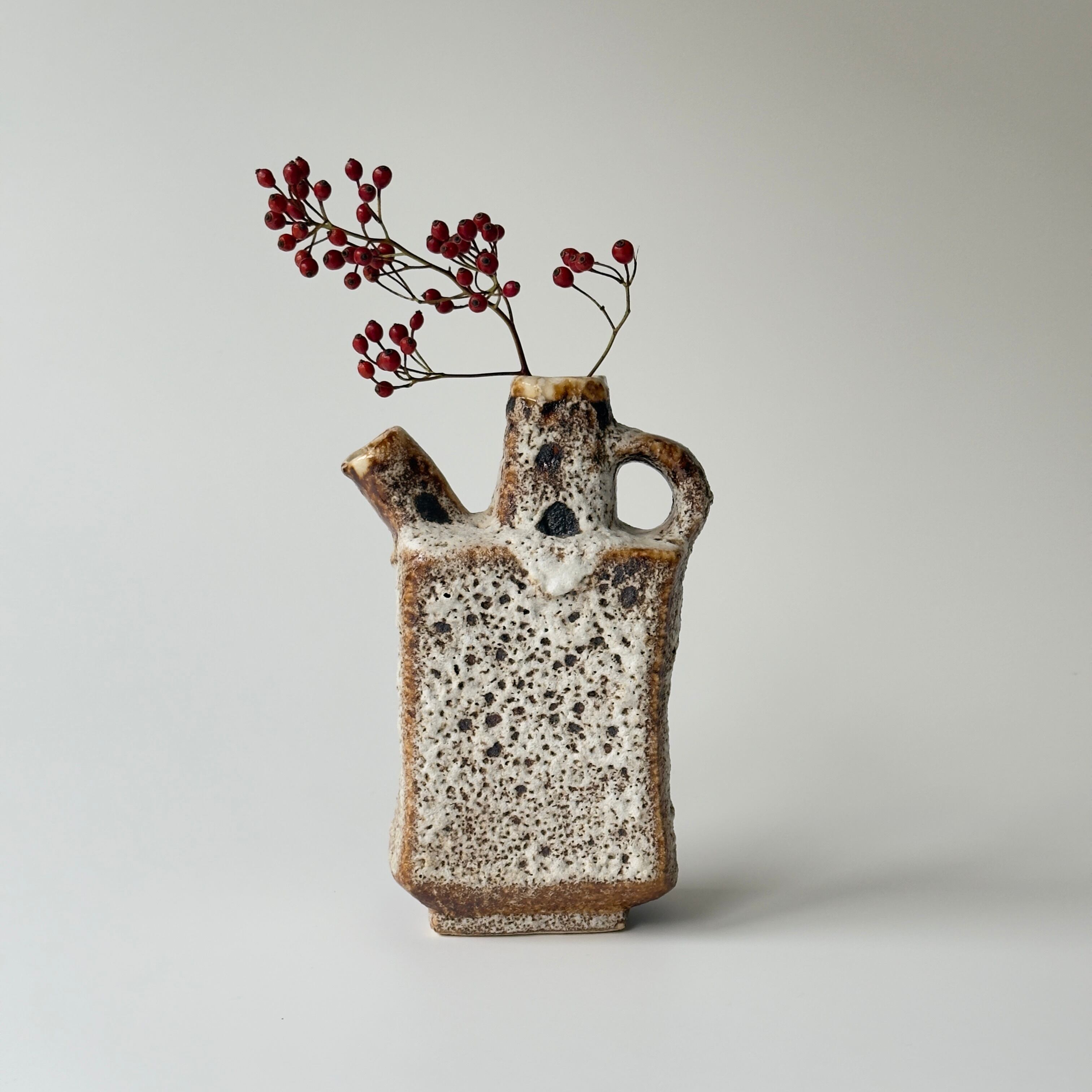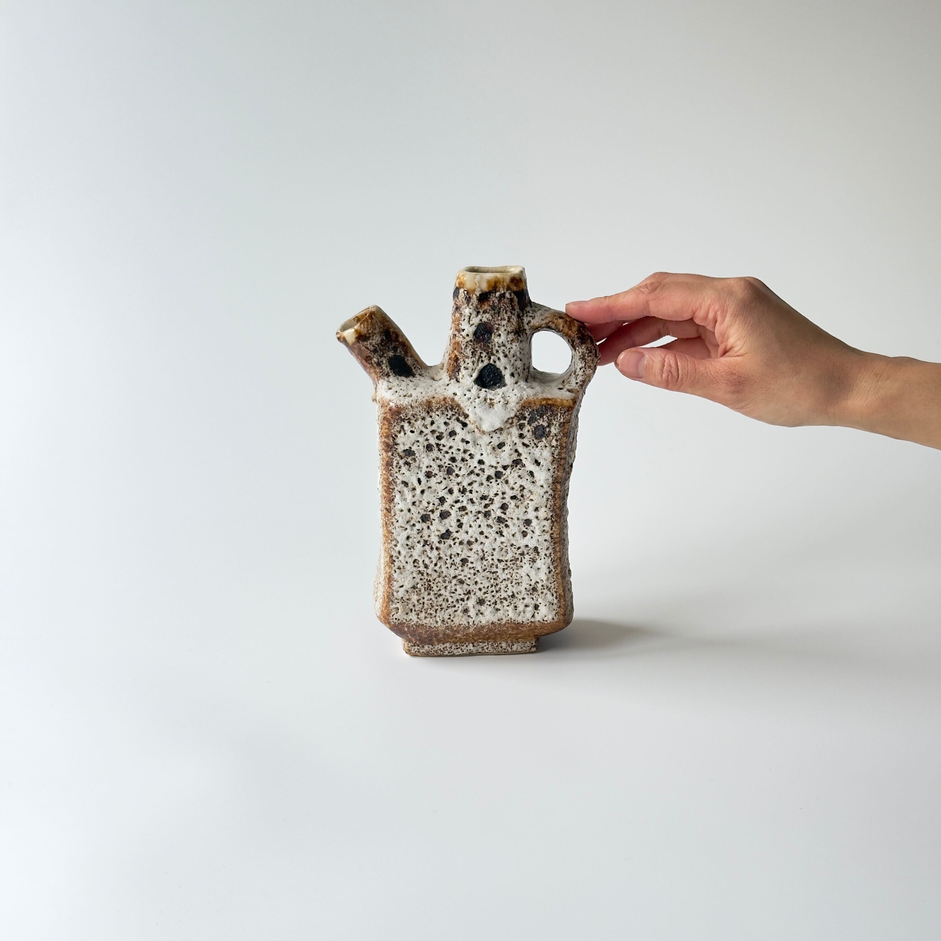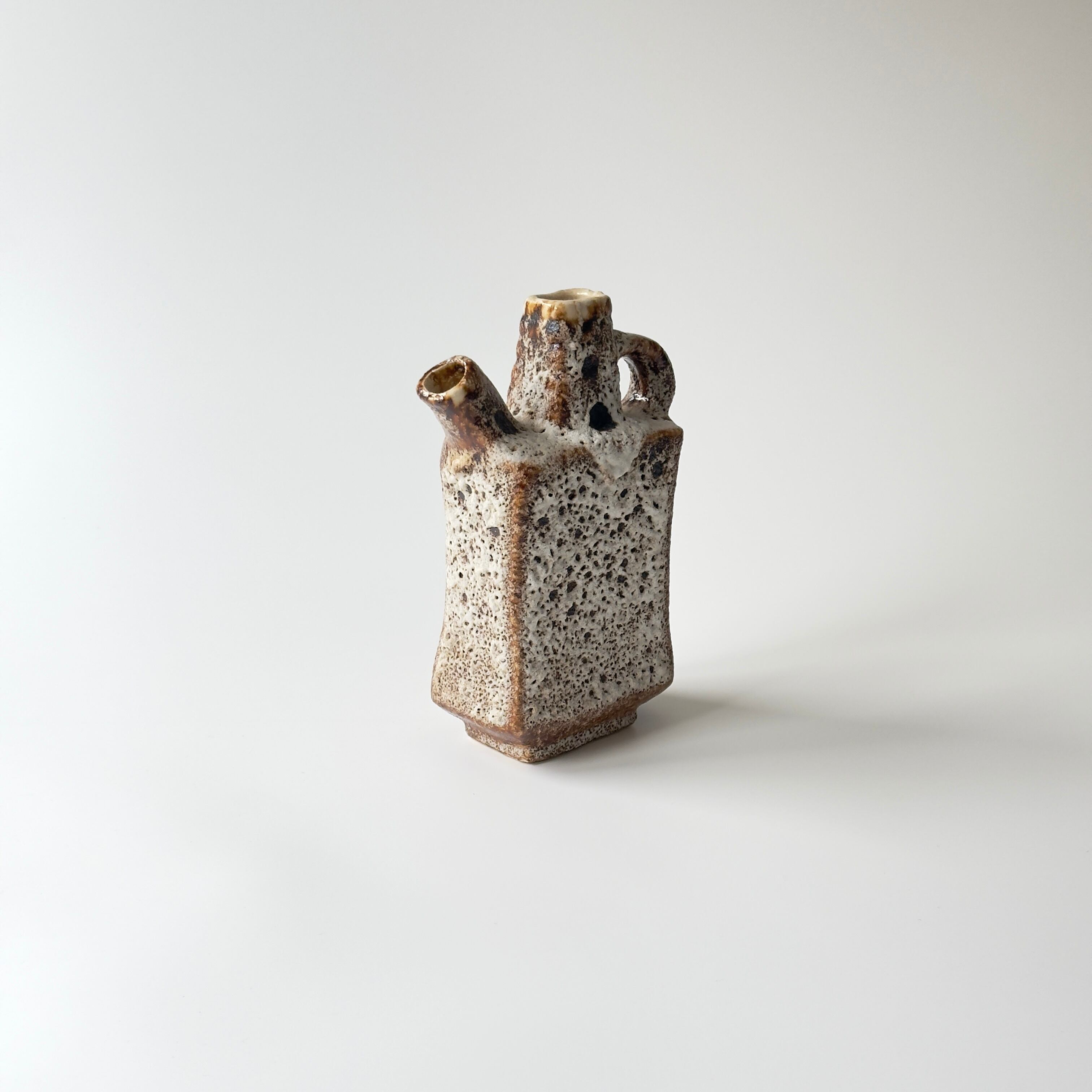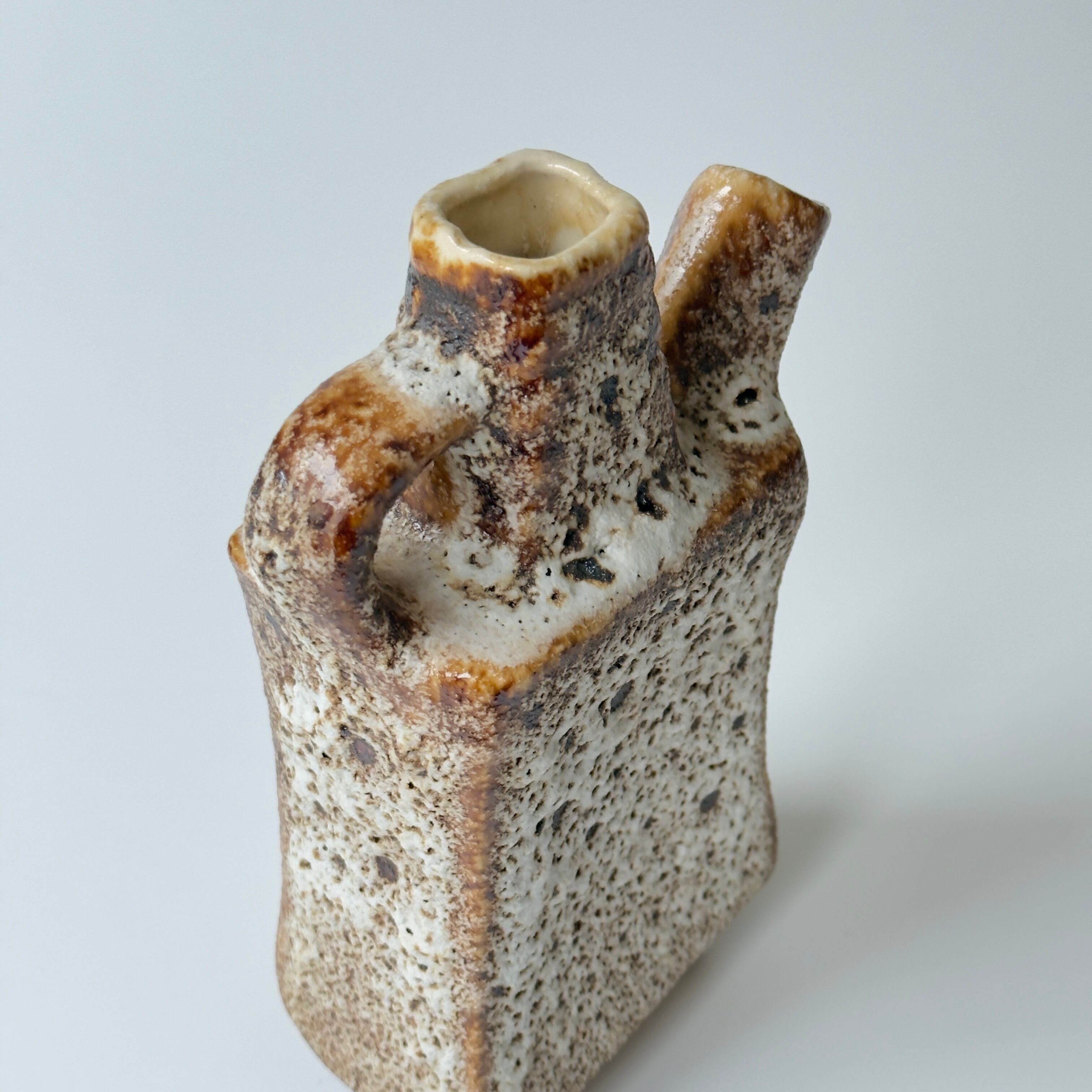 独自の釉薬が、泡状の溶岩のようなユニークな質感を生み出しています。また形状も花瓶という域を超えたデザイン性の高さからオブジェとしても人気があります。